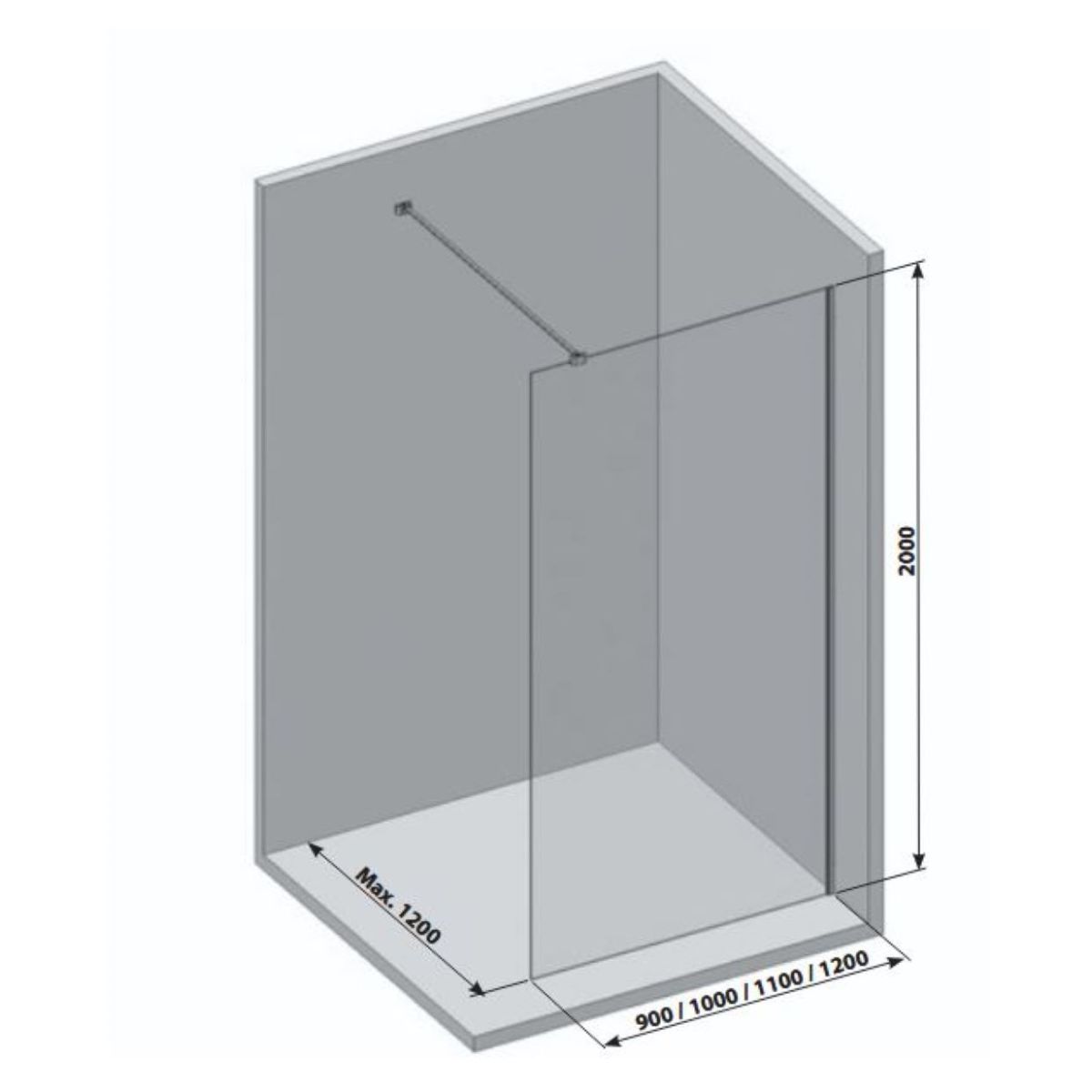 - lățimea panoului de sticlă Walk-In Air Wall: 120 cm