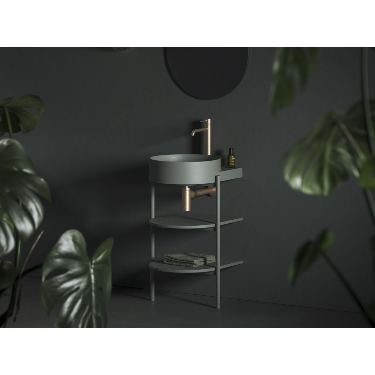 Construcție metalică în picioare cu rafturi CS Yard 40 pentru montarea lavoarului Yard 40, în culoarea verde gri.