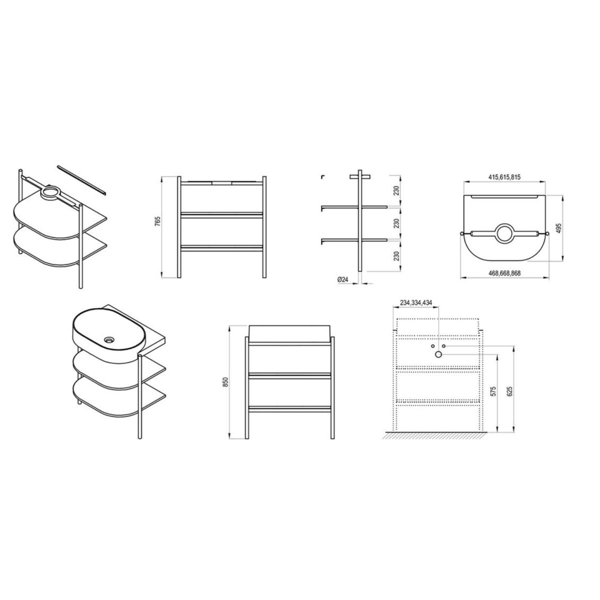 Construcție metalică în picioare cu rafturi CS Yard 60 pentru montarea lavoarului Yard 60, în gri fum.