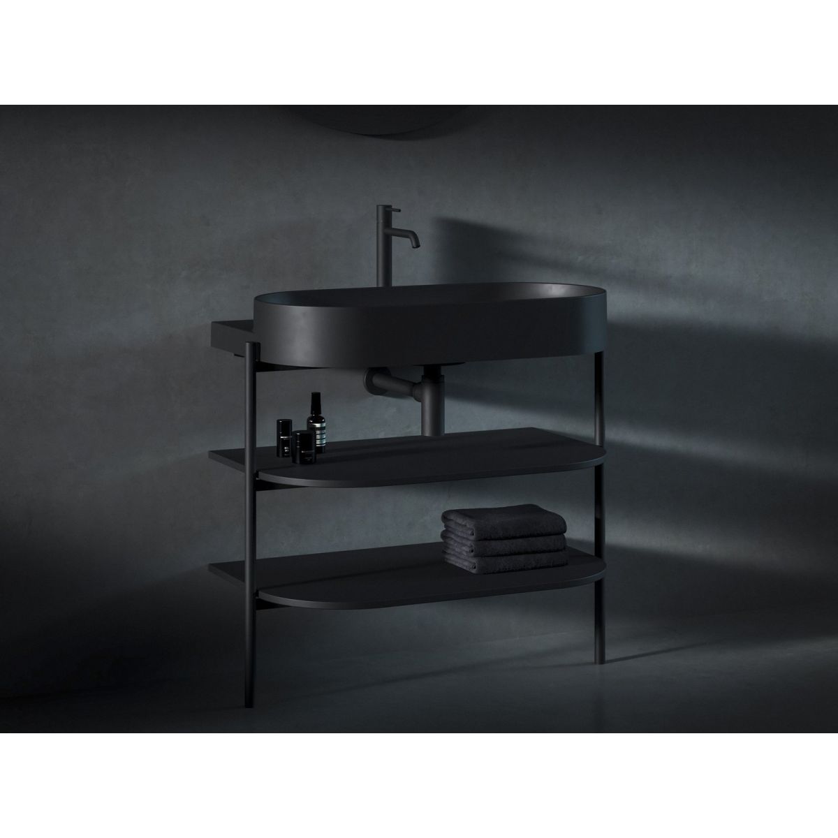 Construcție metalică în picioare cu rafturi CS Yard 80 pentru montarea lavoarului Yard 80. În finisaj negru mat.