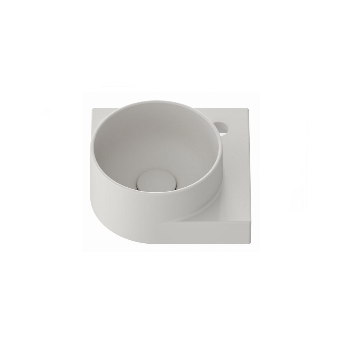 Lavoar Yard colțar din ceramică cu pereți subțiri, pentru montare pe consola Yard sau pe blat, fără revărsare. Culoare gri fumuriu. Cu orificiu pentru robinet mixer.