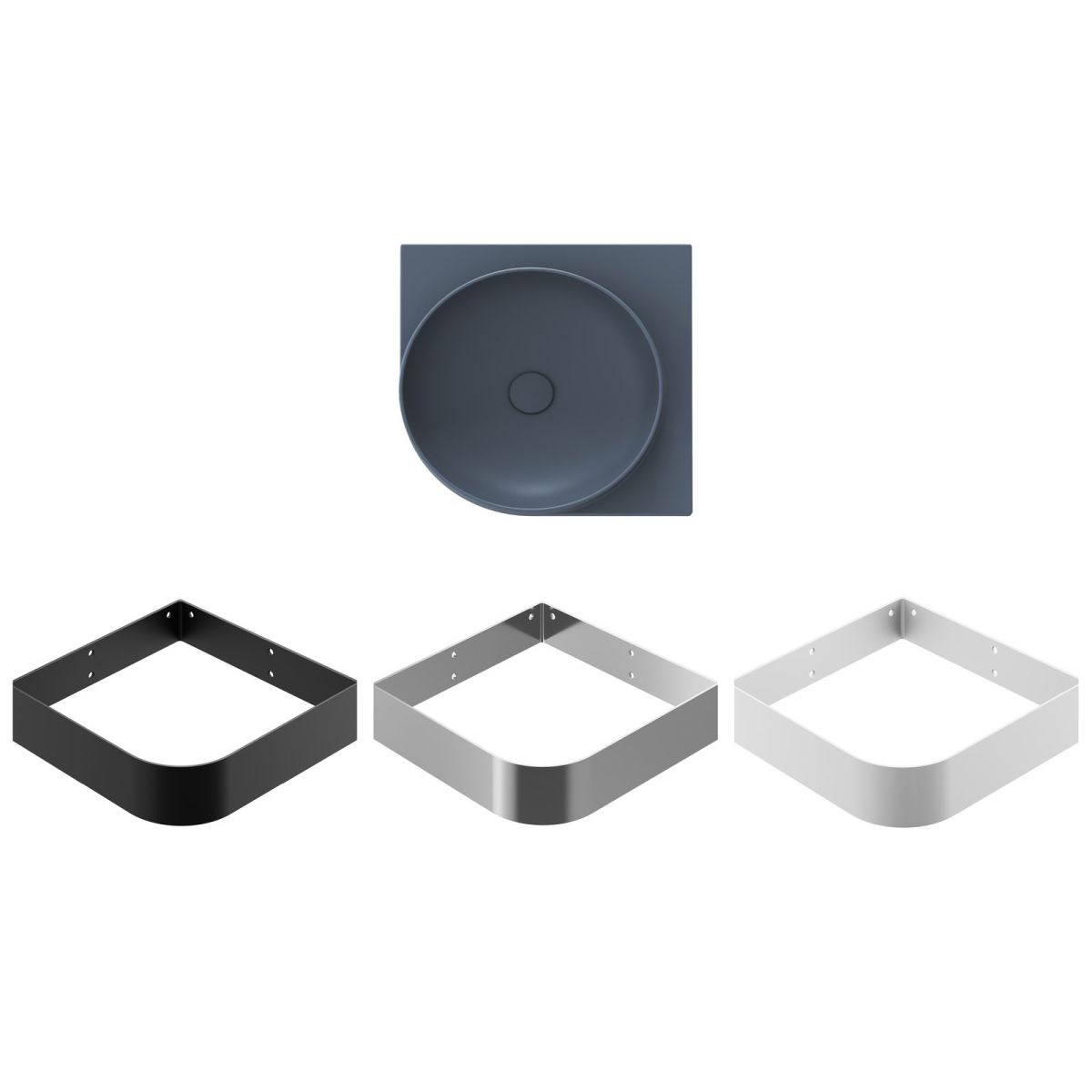 Chiuvetă din ceramică cu pereți subțiri Yard, concepută pentru montarea pe o consolă sau blat Yard, fără preaplin. Culoare: albastru marin. Fără orificiu – pentru conectarea la un robinet ascuns pentru chiuvetă.