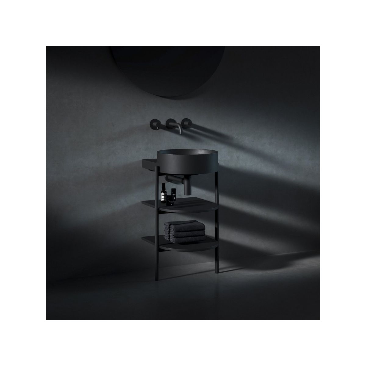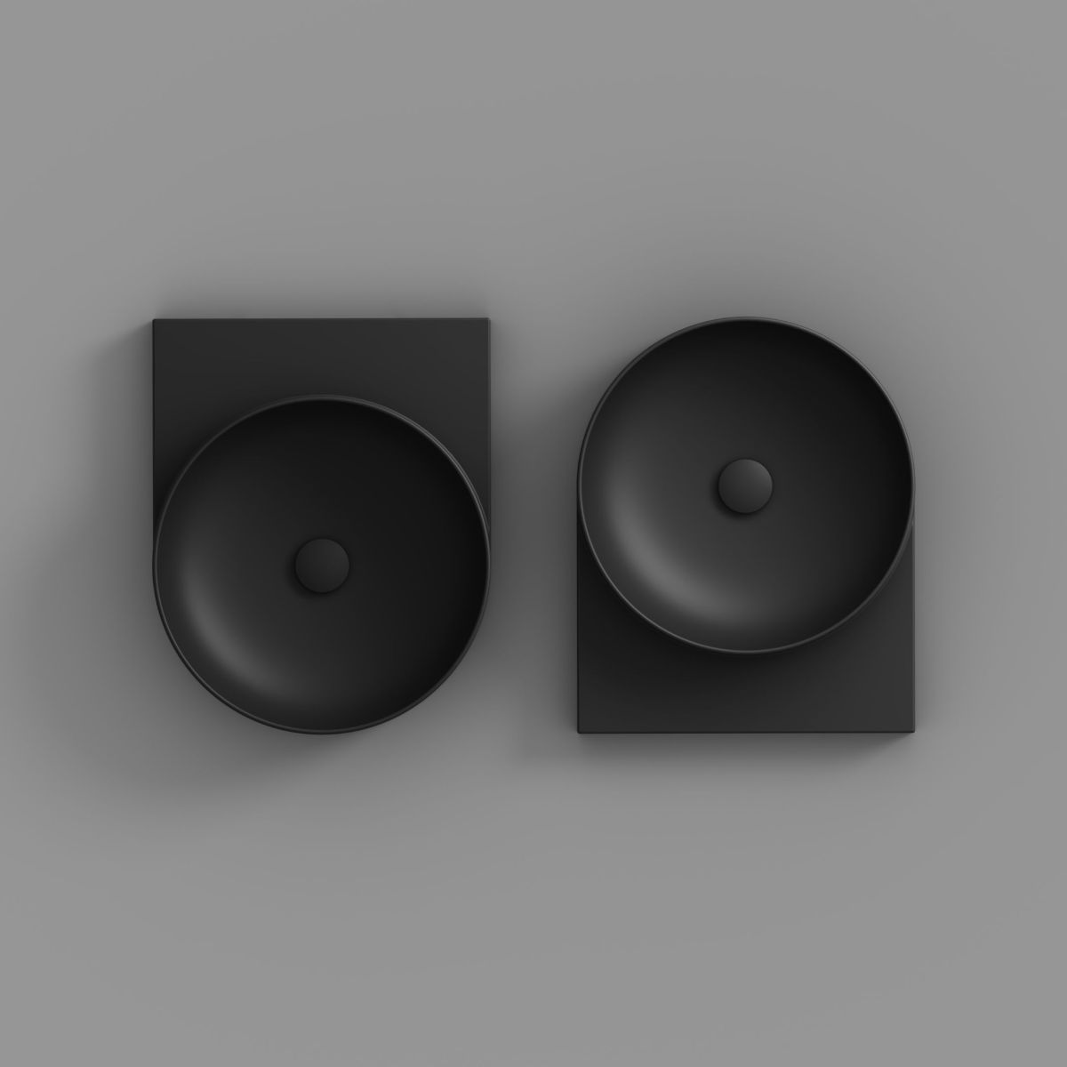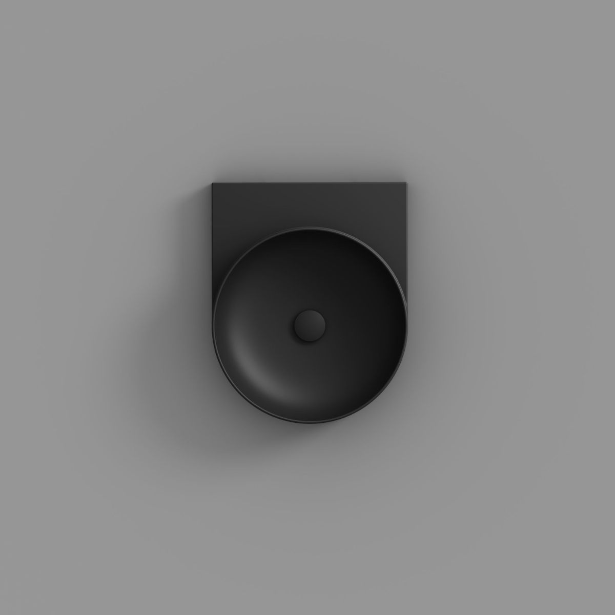 Lavetă Yard din ceramică cu pereți subțiri, proiectată pentru a fi montată pe o consolă sau un blat Yard, fără revărsare. Culoare negru mat. Fără deschidere - pentru a fi combinat cu un mixer de bazin ascuns.