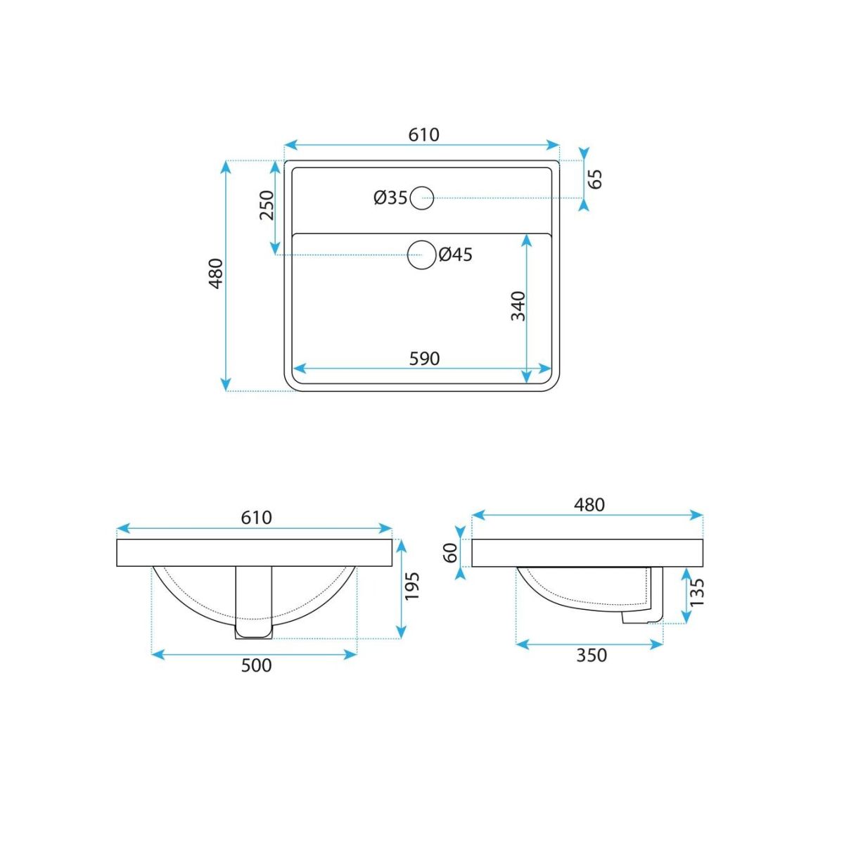 Rea Alisha lavoar 61x48 cm dreptunghiular încastrat alb REA-U8424