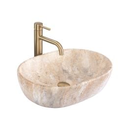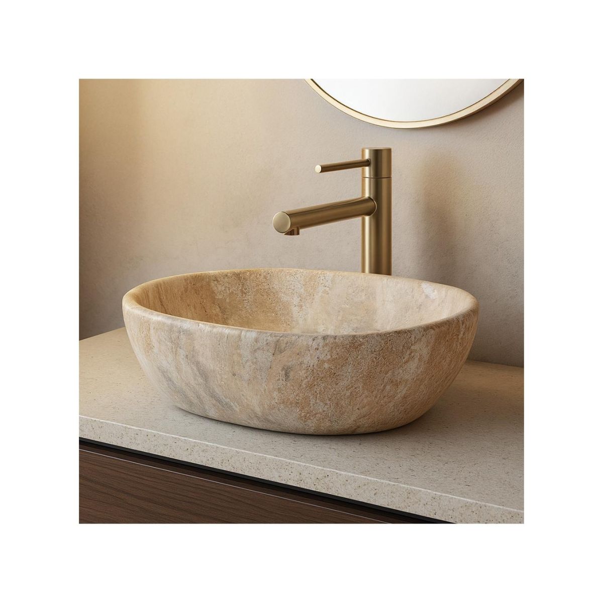 Chiuveta de blat Amelia, cu structura sa unică inspirată din piatra naturală, este o combinație perfectă între eleganță și frumusețe brută. Culoarea sa bej-nisipiu, cu accente delicate de gri, creează un efect de textură organică, perfect adaptat băilor în stil natural, spa, Japandi sau boho. Fabricată din ceramică sanitară de înaltă calitate, chiuveta este durabilă și rezistentă la utilizarea zilnică. Modelul este potrivit pentru instalarea atât pe blat, cât și pe dulap, permițând adaptarea la nevoile individuale de design. Lipsa orificiului pentru robinet permite utilizarea de accesorii în picioare sau ascunse, oferindu-vă libertate completă în proiectarea zonei chiuvetei. Această chiuvetă este o combinație armonioasă între natură, formă modernă și manoperă solidă.