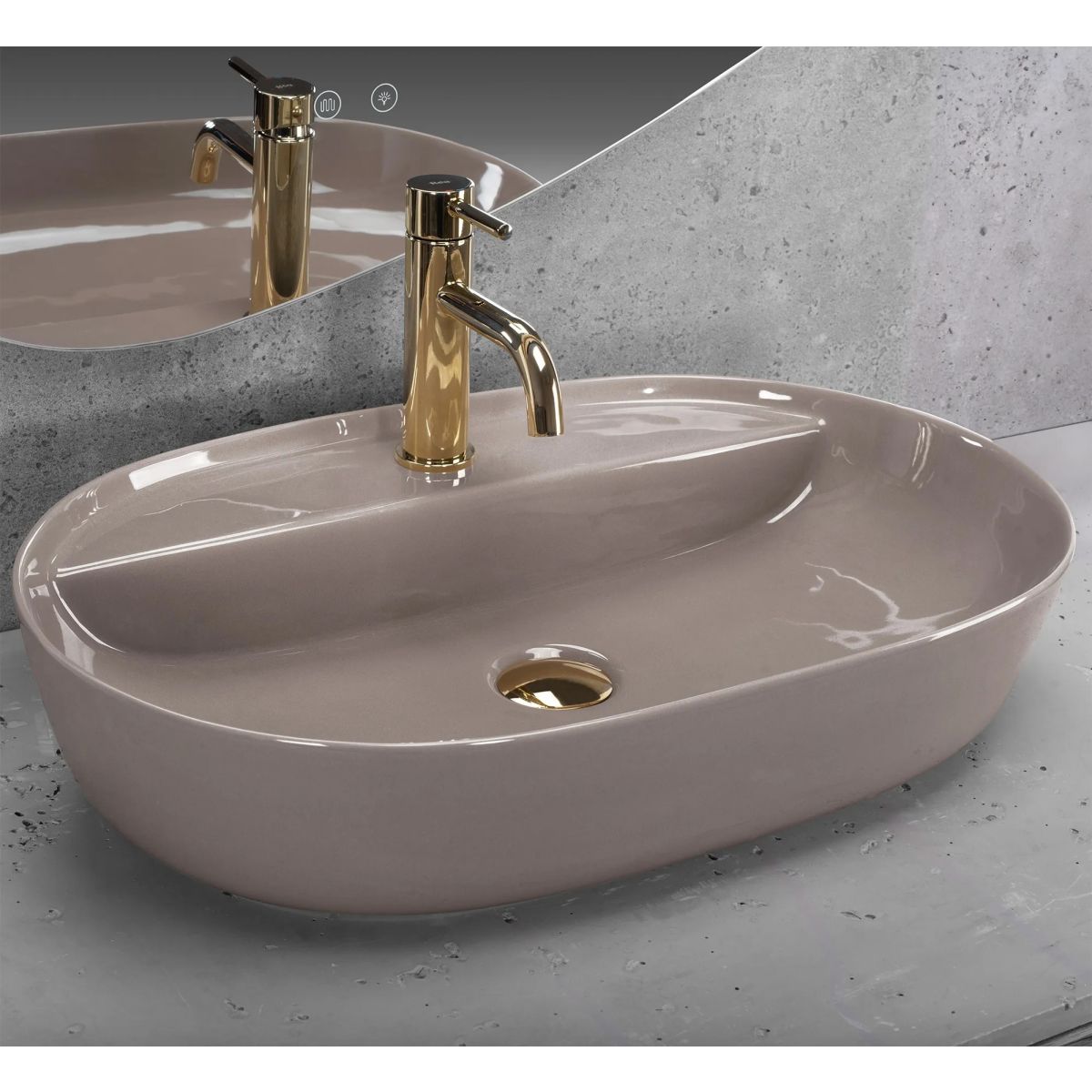 Chiuveta de blat Aura 61 este o soluție unică pentru cei care apreciază funcționalitatea și eleganța în baie. Fabricată din ceramică sanitară de cea mai înaltă calitate, combină designul modern cu soluții practice. Forma ovală a lavoarului și culoarea bej cu finisaj lucios conferă interiorului un caracter elegant, creând un element decorativ unic.