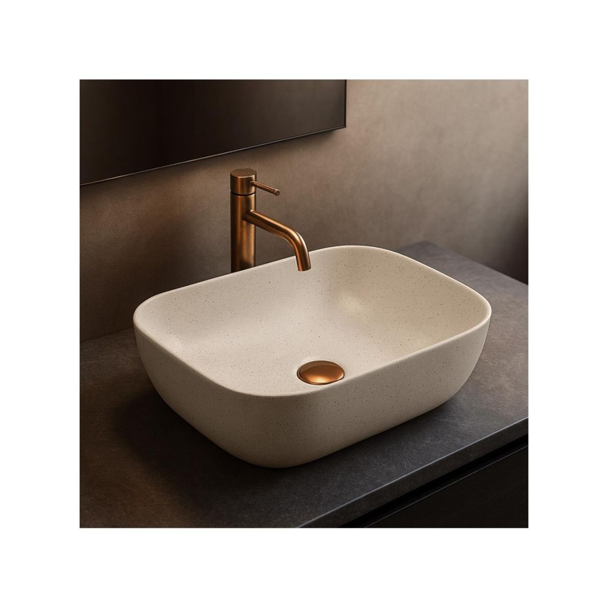 Chiuveta de blat Belinda Warm, cu textura sa unică inspirată din piatra naturală, este o combinație perfectă între eleganță și frumusețe brută. Designul său se potrivește perfect în băile în stil natural, spa, Japandi sau boho. Fabricată din ceramică sanitară de înaltă calitate, chiuveta este durabilă și rezistentă la utilizarea zilnică. Modelul este potrivit pentru instalarea atât pe blat, cât și pe dulap, permițând adaptarea la nevoile individuale de design. Lipsa orificiului pentru robinet permite utilizarea accesoriilor vizibile sau ascunse, oferindu-vă libertate completă în proiectarea zonei chiuvetei. Această chiuvetă este o combinație armonioasă între natură, formă modernă și manoperă solidă.