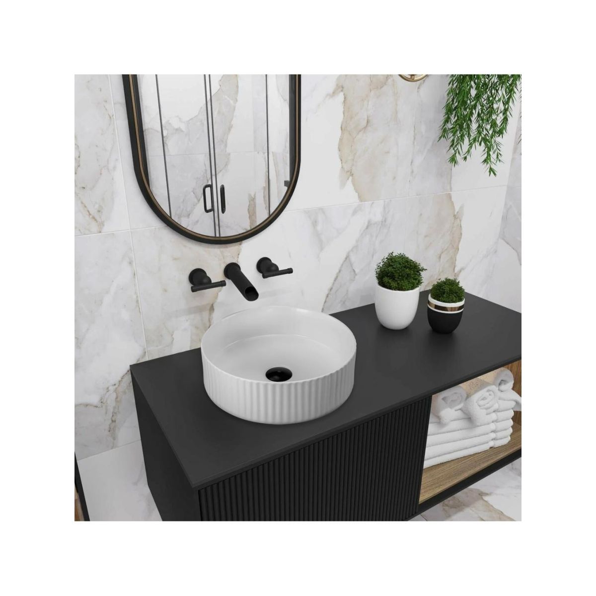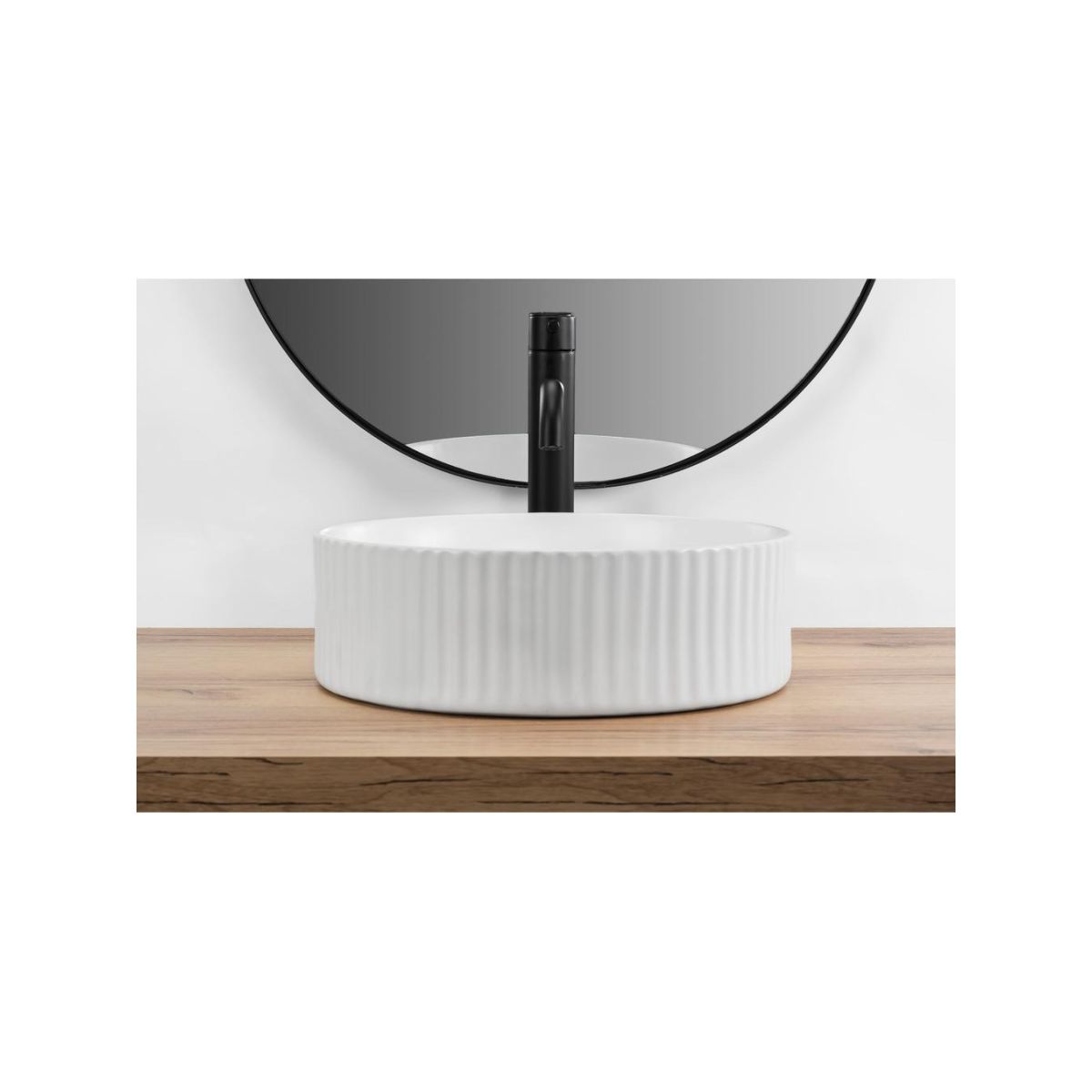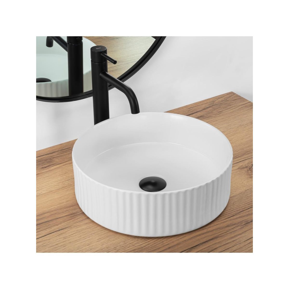 Vă prezentăm o chiuvetă de blat care va conferi băii dvs. un aspect modern și o funcționalitate ridicată. Chiuveta este fabricată din ceramică sanitară de înaltă calitate. Suprafața exterioară este canelată, creând un efect vizual interesant care conferă băii un caracter unic.