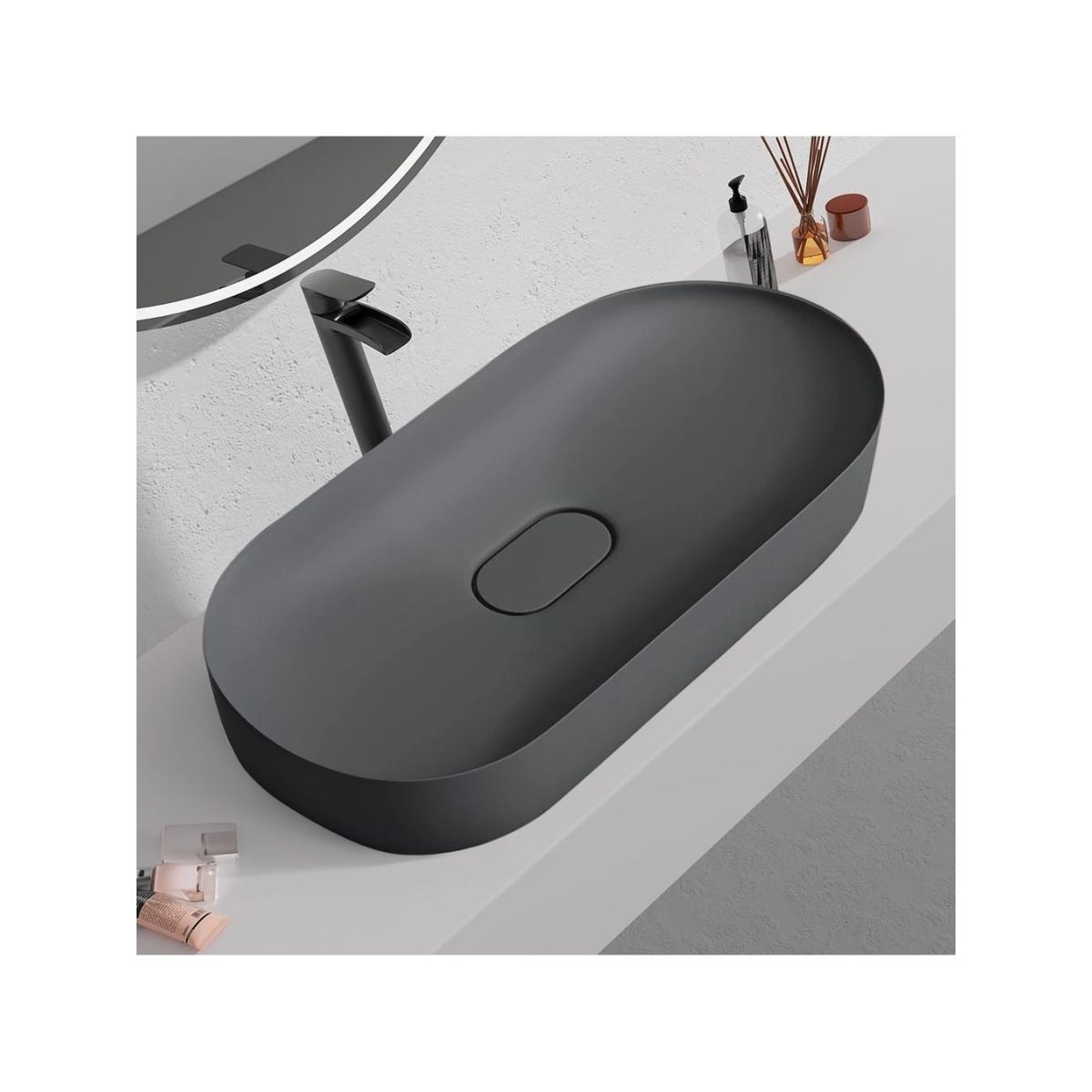 Rea Iris lavoar 70x35.5 cm ovale de blat gri/piatră REA-U4306