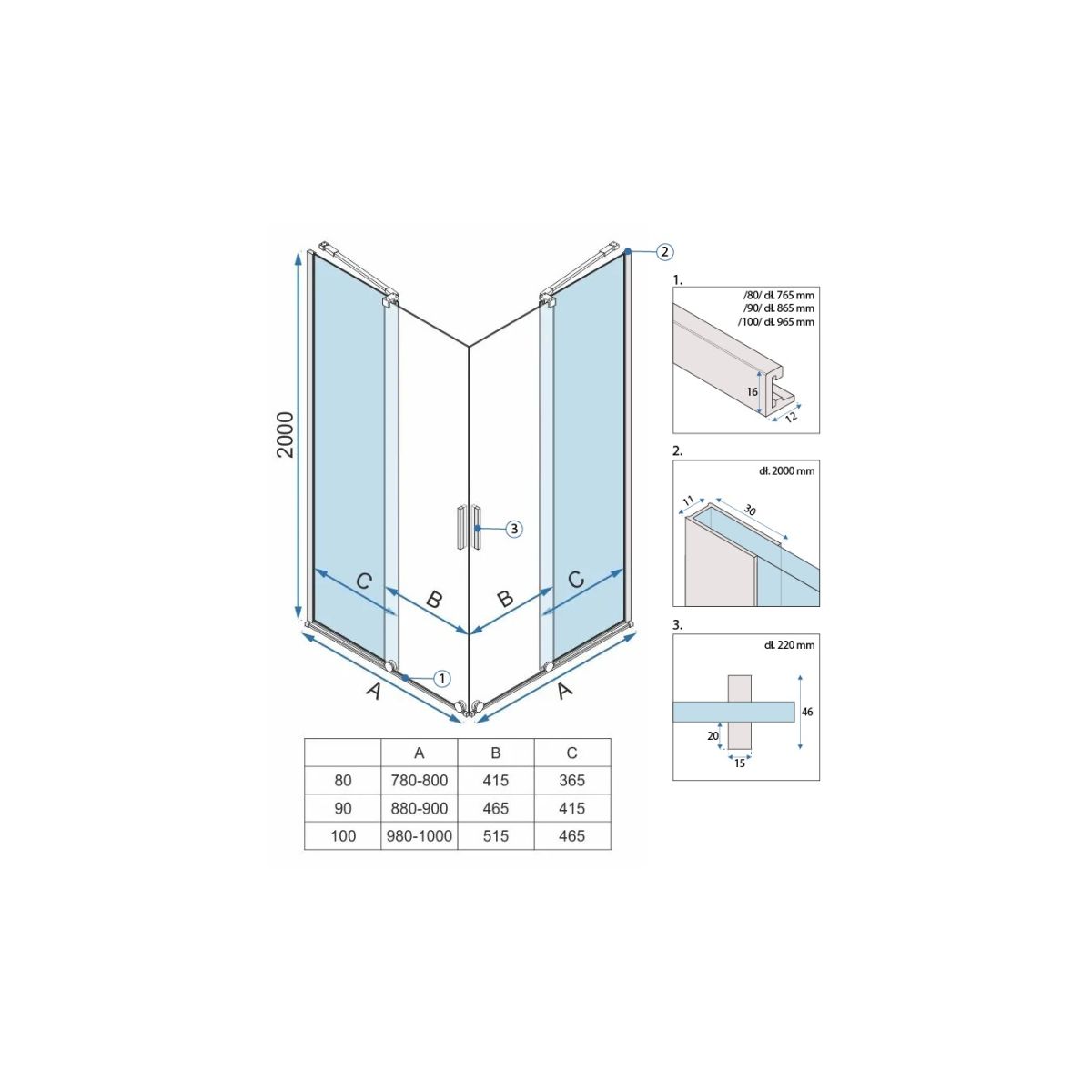 Rea Montana cabină de duș 90x90 cm pătrat auriu mat/sticlă transparentă REA-K6636
