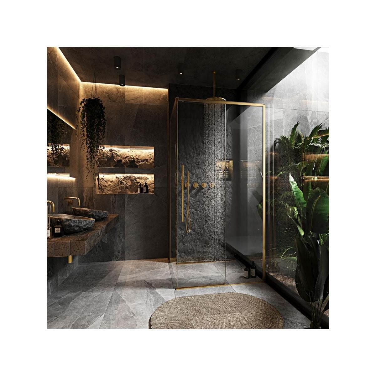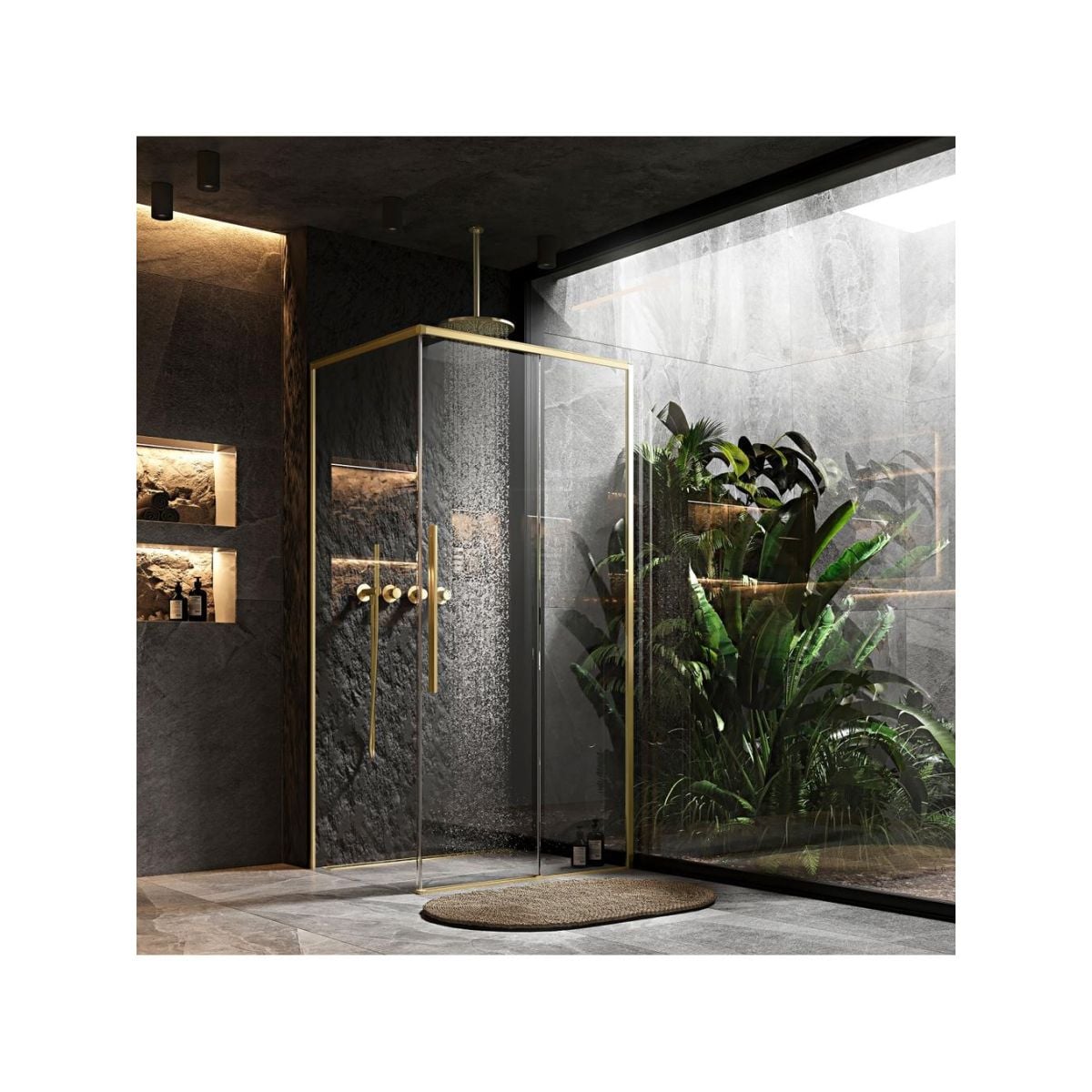 Rea Solar Brush Gold cabină de duș 100x80 cm dreptunghiular auriu periat/sticlă transparentă REA-K9509