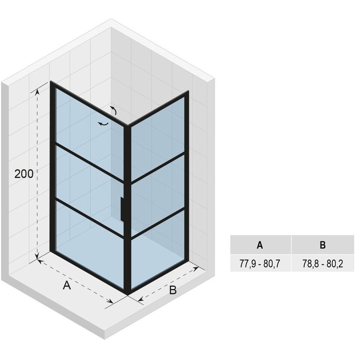 Riho Grid cabină de duș 80x80 cm pătrat negru mat/sticlă cu model G004007121
