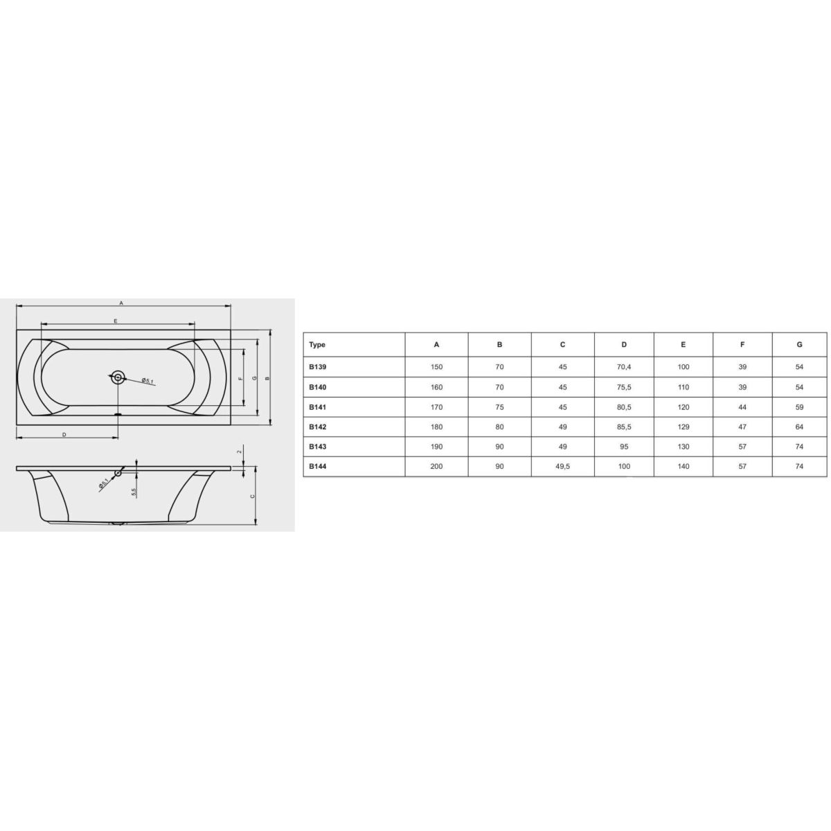 Riho Linares cada dreptunghiulară 170x75 cm alb B141001105