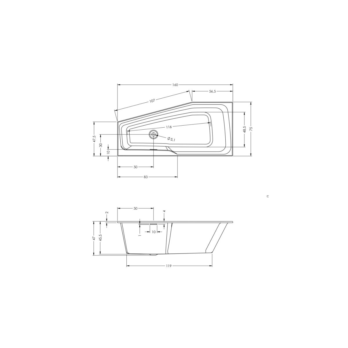 Riho Rethink Space cadă de colț 160x75 cm partea stângă alb B112006005