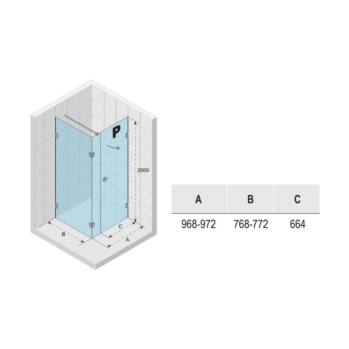 - lățimea ușii (C): 66.4 cm
