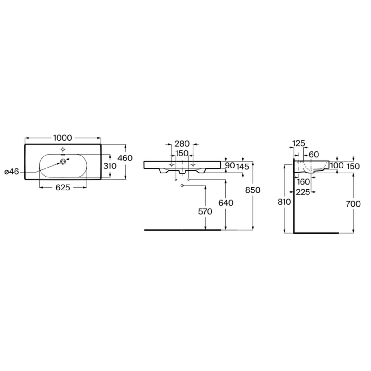 Roca Meridian lavoar 100x46 cm dreptunghiular clasică-mobilier negru A327746080