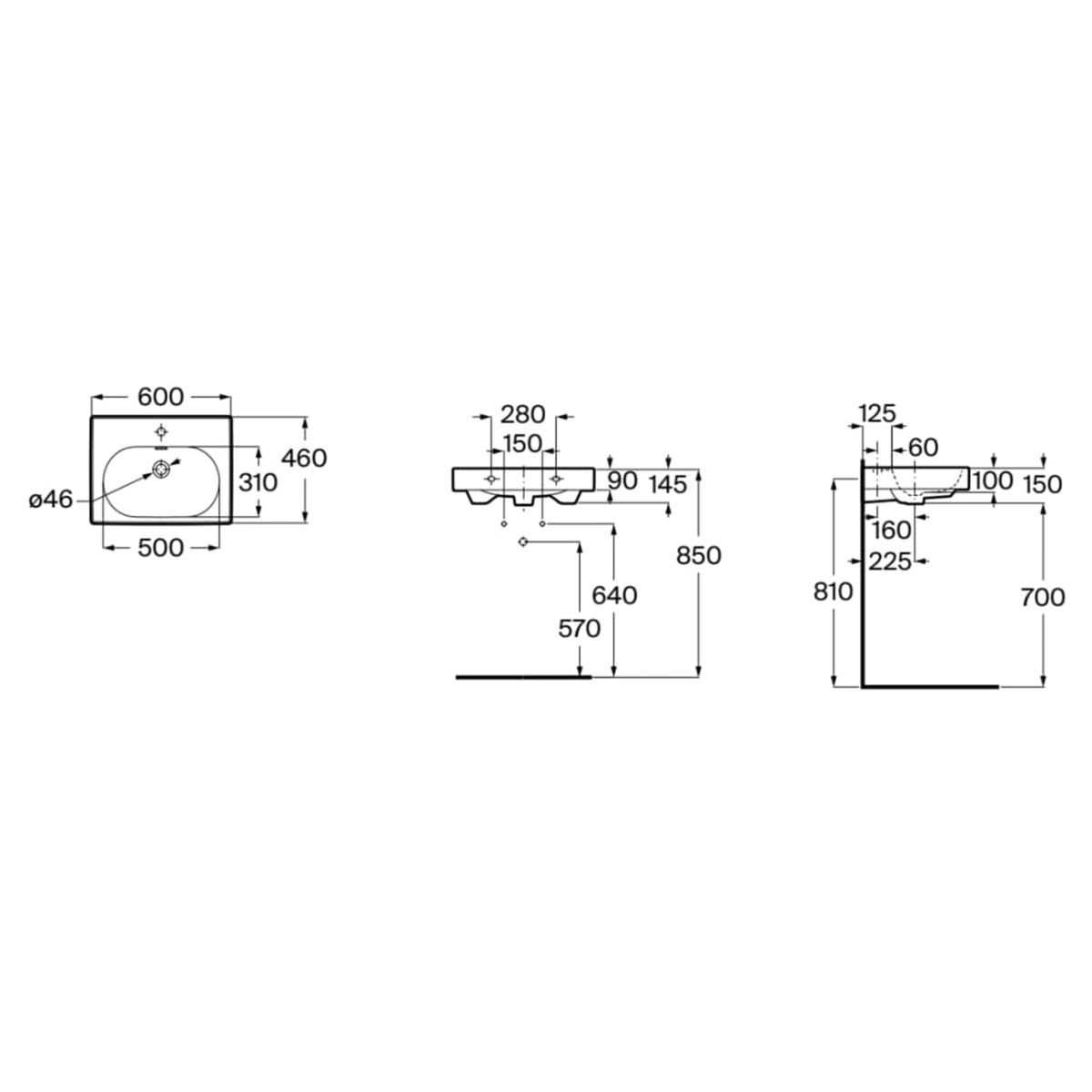Roca Meridian lavoar 60x46 cm dreptunghiular clasică-mobilier alb A327742620