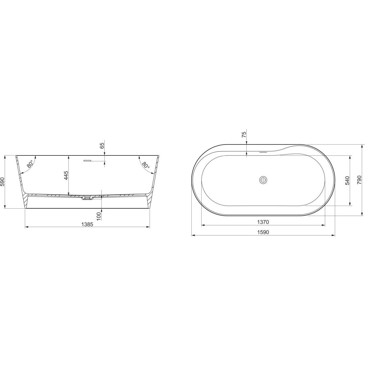 - cadă de baie compozită, fără picioare
