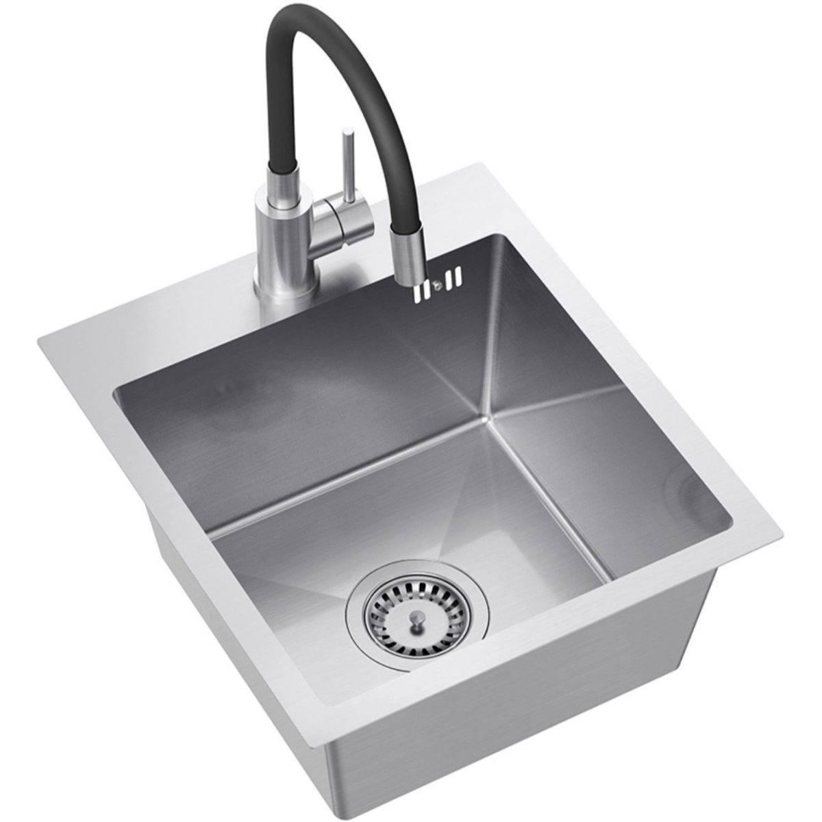 - Acest set practic și estetic: chiuvetă din oțel + robinet de bucătărie este o soluție gata pregătită pentru o bucătărie modernă și funcțională. Chiuveta, completată de un robinet asortat din oțel inoxidabil cu un bec flexibil practic, creează un ansamblu coerent în ceea ce privește designul și ușurința utilizării.