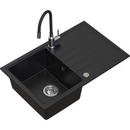 - Un set de bucătărie modern care combină funcționalitatea, confortul și estetica atemporală. Chiuveta cu o cuvă spațioasă și adâncă asigură confortul chiar și atunci când spălați oale mari, iar scurgătorul lung și practic mărește semnificativ spațiul de lucru și facilitează sarcinile zilnice din bucătărie. Sifonul automat de economisire a spațiului vă permite să maximizați spațiul din dulapul de sub chiuvetă, iar butonul elegant de control al scurgerii subliniază caracterul modern al setului și sporește confortul utilizării. Ansamblul este completat de un robinet solid din oțel cu un bec flexibil, care vă permite să manevrați liber jetul de apă și să umpleți cu ușurință vasele. Montarea simplă cu piuliță face instalarea rapidă și ușoară.