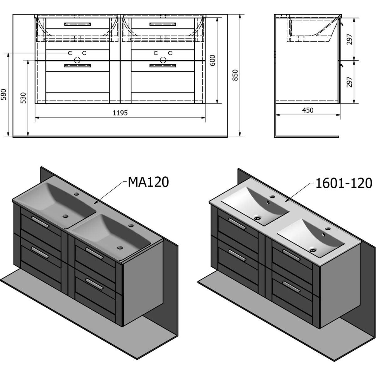 Sapho Amia dulap 119.5x45x60 cm sub chiuveta pe perete stejar-lemn AM120-2020