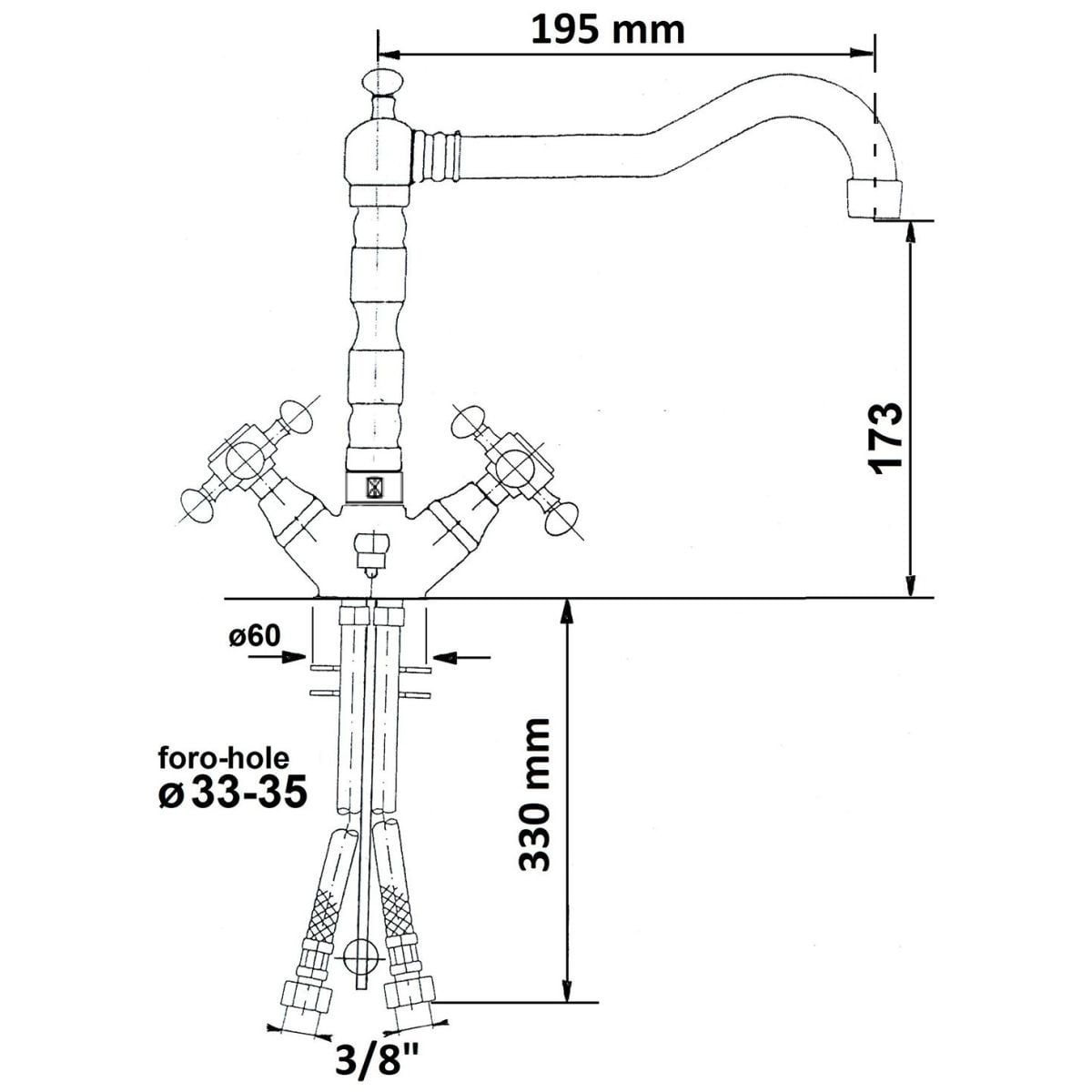 - vine standard cu marcaje de apă caldă și rece în limba cehă, marcaje în limba engleză incluse