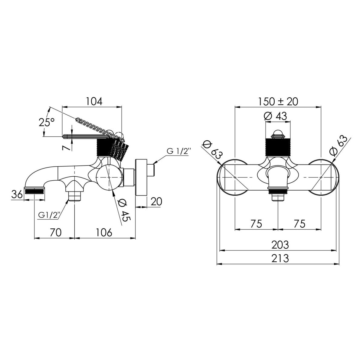 Sapho Bebe baterie cadă-duș perete crom BB010