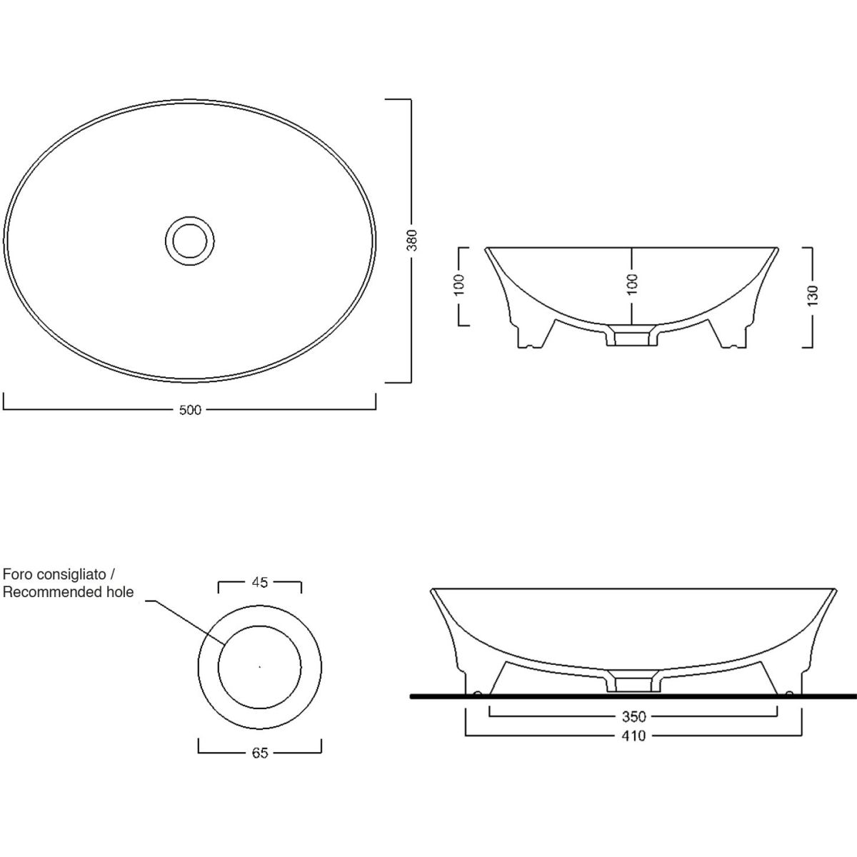 Sapho Idea lavoar 50x38 cm ovale de blat alb WH102