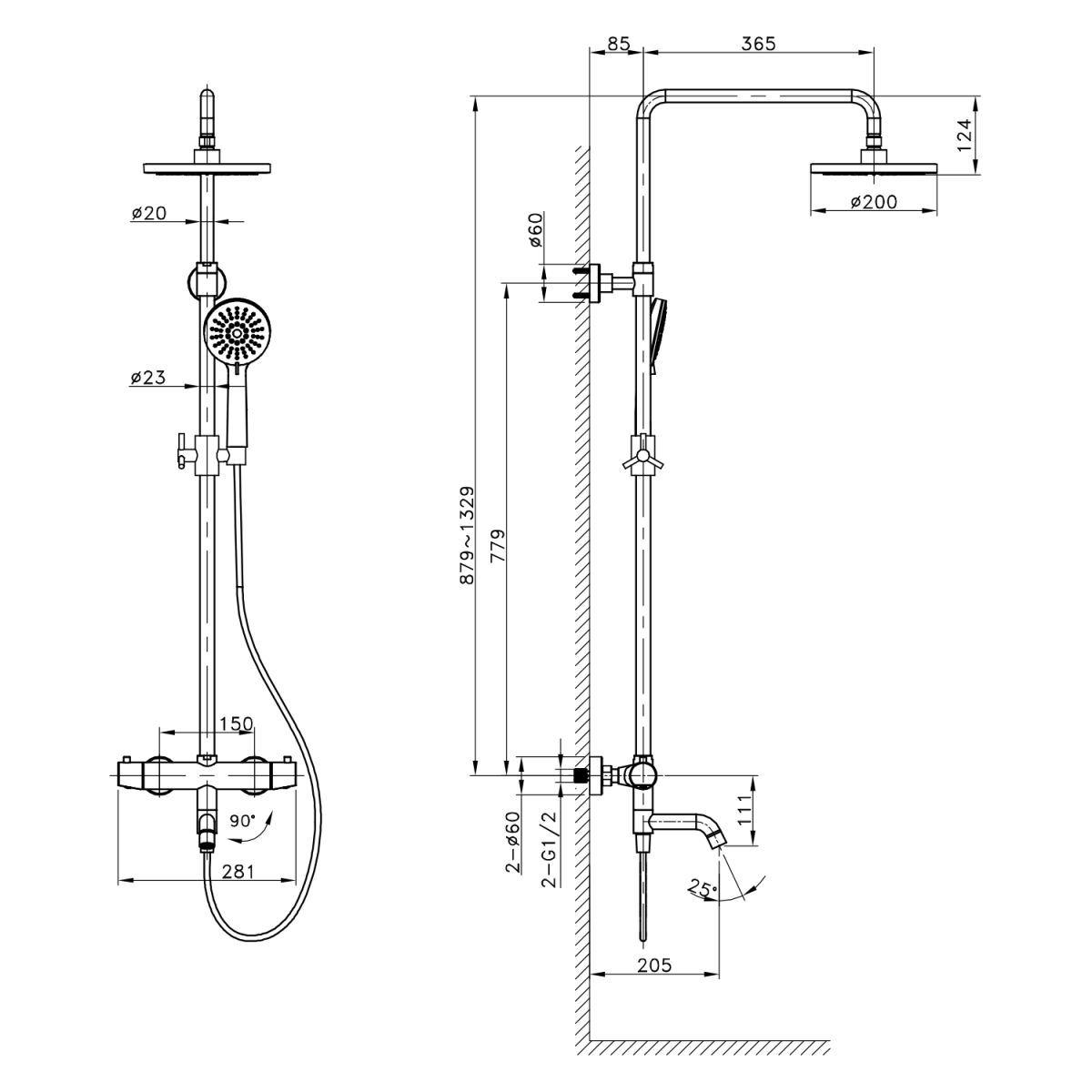 - Inclus: baterie cu comutator, duș ploaie, duș de mână, furtun de duș, tija de duș