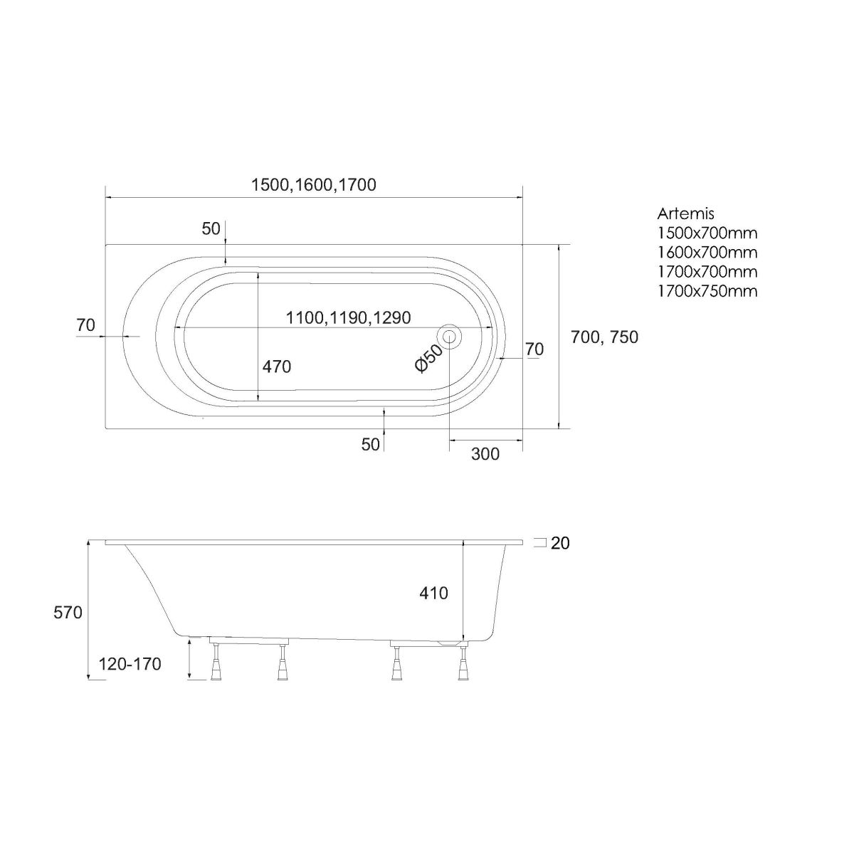 Cada Artemis a fost concepută pentru a oferi un confort maxim utilizatorului, grație suprafețelor interioare profilate ergonomic, care asigură confortul în timpul băii. Marginea subțire și elegantă Slim, cu o lățime de 20 mm, conferă căzii o notă de lejeritate și un caracter modern, integrând-o perfect în stilul unei băi contemporane.