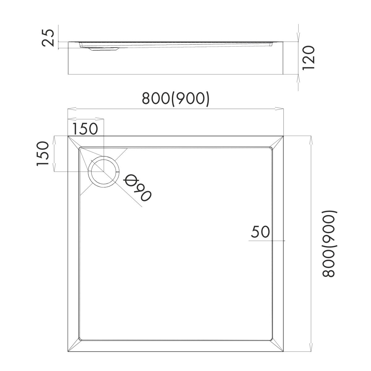 Schedline Cameron Black Stone cădiță de duș pătrată 80x80 cm negru 3ST.C1K-8080/C/ST