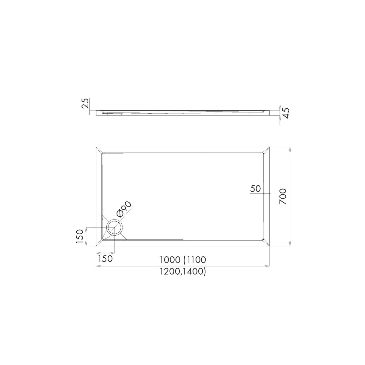 Schedline Sharper cădiță de duș dreptunghiulară 100x70 cm alb 3S.S1P-70100