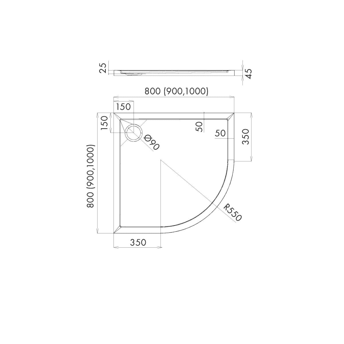 Schedline Sharper cădiță de duș semirotundă 80x80 cm alb 3S.S1O-8080