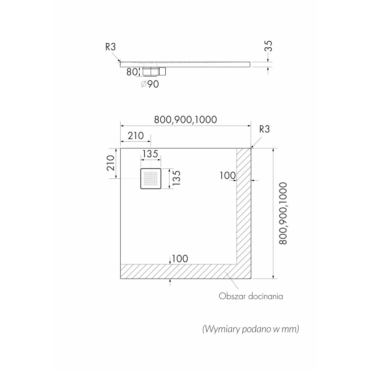 Schedpol Kalait Cement Stone cădiță de duș pătrată 80x80 cm ciment 3.3100/CT/ST-M2