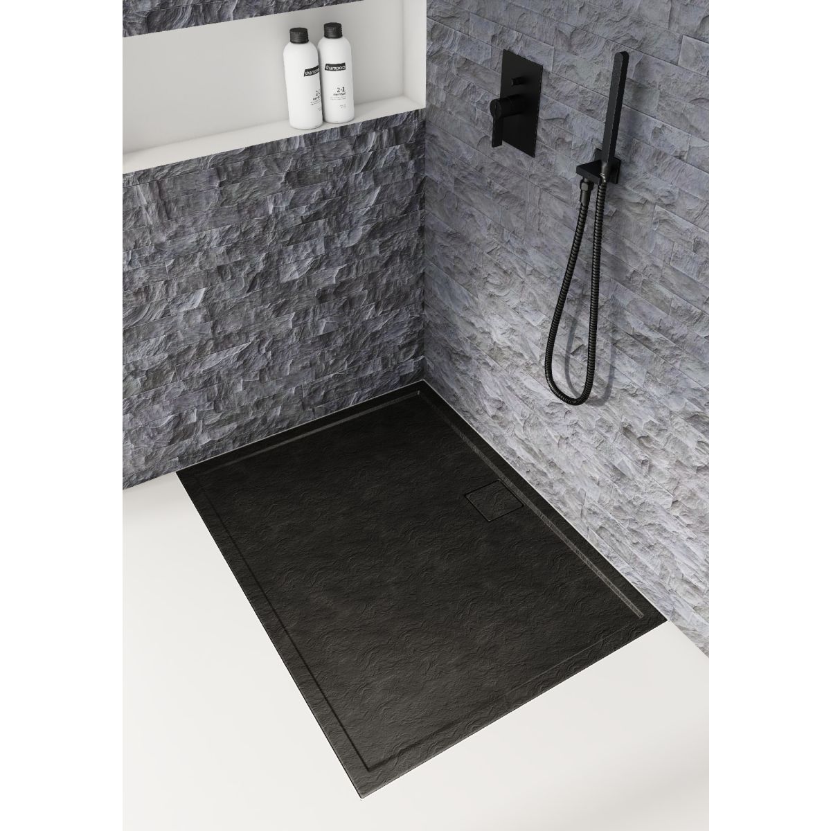 Schedpol Omega Black Stone cădiță de duș dreptunghiulară 120x80 cm negru 3.0453/C/ST