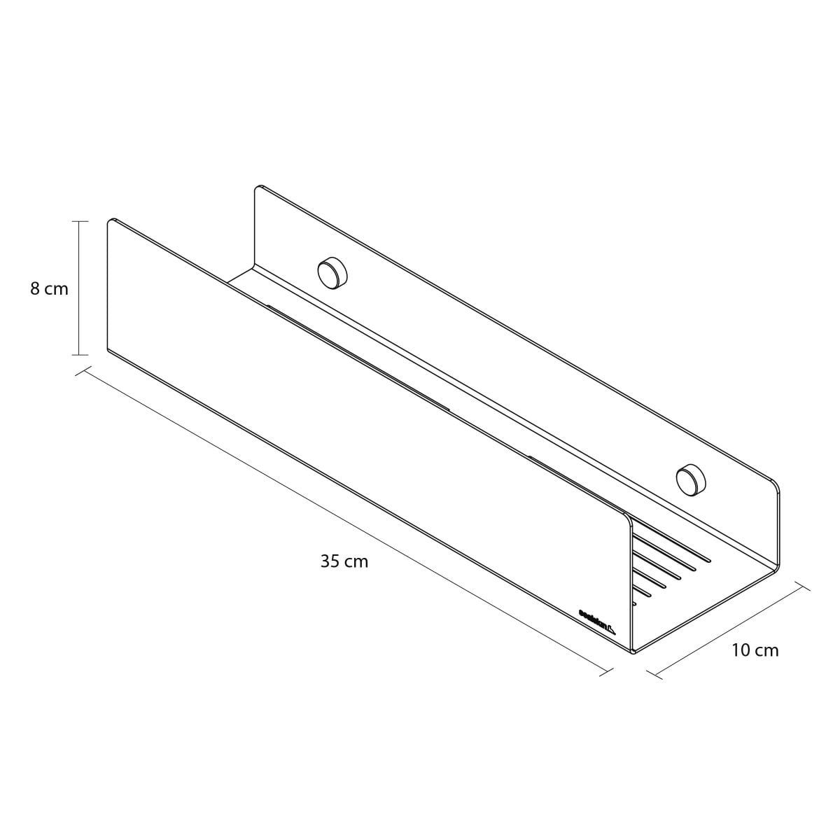 Acest raft de perete elegant de 35 cm este alegerea perfectă pentru cei care apreciază designul modern și soluțiile practice. Este perfect pentru baie, ca loc de depozitare a sticlelor de șampon, a dozatoarelor de săpun sau a difuzoarelor de parfum. Datorită părții frontale înalte, toate obiectele rămân la locul lor, iar orificiile inteligente de scurgere împiedică acumularea apei, facilitând curățarea.