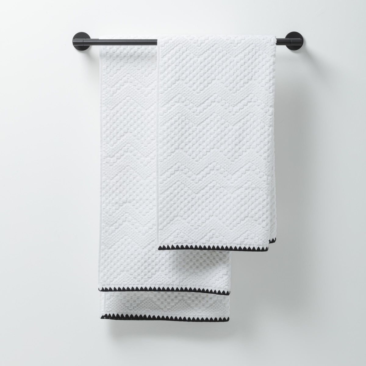 Doriți să simțiți luxul unei băi de hotel? Prosopul confortabil Luna vă va permite să faceți exact acest lucru! Datorită bumbacului gros, de înaltă calitate, robust și moale de 550 gr/m², prosopul nu este doar extrem de moale la atingere, ci și foarte absorbant. Bucla practică îl face ușor de agățat pentru un confort și mai mare. Finisajul brodat al prosopului, care reflectă meșteșugul tradițional portughez, este un detaliu frumos care arată grija și diligența cu care prosopul este produs în Portugalia. Prosopul are un model la modă țesut în zigzag și este disponibil în alb atemporal cu tiv negru, ceea ce îl face să se potrivească perfect cu o baie în stil minimalist. Bucurați-vă de prosopul luxos și plăcut de mare Luna, al cărui bumbac provine din producția care vizează atât protejarea fermierilor, cât și îmbunătățirea produsului final. Pe scurt, prosopul Luna este un must-have pentru acele persoane care apreciază luxul și confortul!