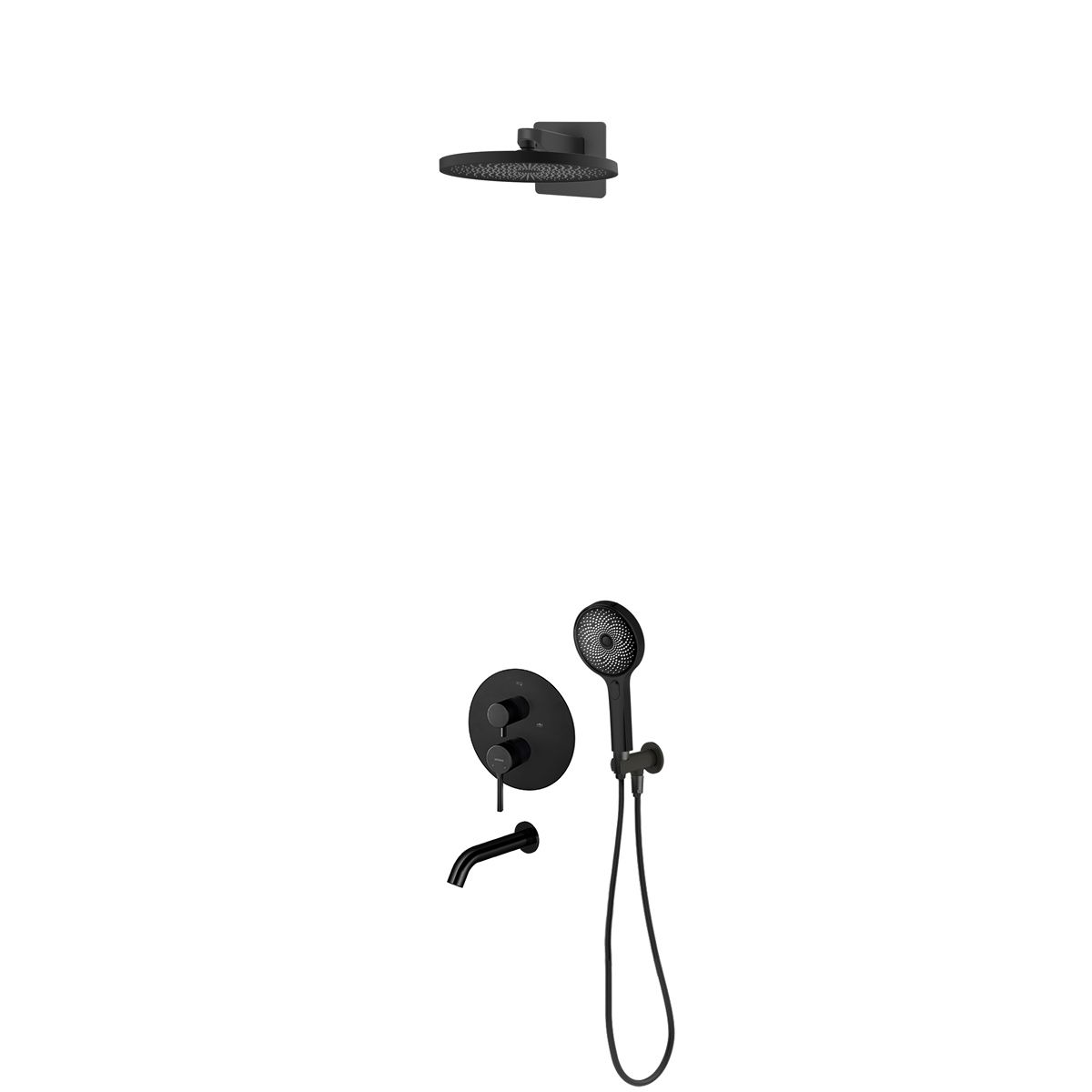 Inclus: baterie cu comutator, duș ploaie, duza de cadă, duș de mână, furtun de duș, braț de duș, conexiune unghiulară