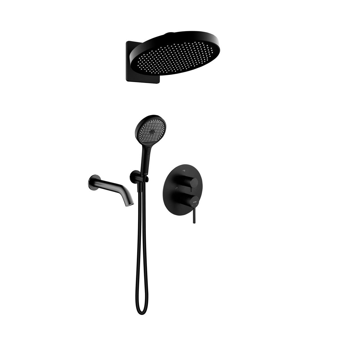 Inclus: baterie cu comutator, duș ploaie, duza de cadă, duș de mână, furtun de duș, braț de duș, conexiune unghiulară