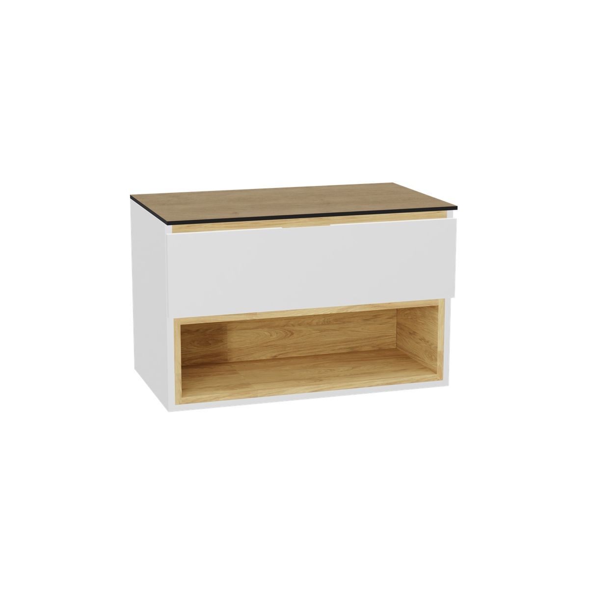 Dulap lavoar modern Tuto 2.0 cu un sertar încăpător și un compartiment de depozitare practic deschis. Fronturile sunt livrate complete cu mânere. Toate fronturile sunt într-o culoare asortată cu corpul dulapului. Dulapul combină perfect funcționalitatea cu designul modern. Varietatea de configurații face posibilă adaptarea mobilierului la stilul și nevoile individuale ale fiecărei băi. Fronturile sertarelor sunt furnizate cu mânere incluse. Dulapul și sertarul sunt furnizate complet asamblate. Fronturile și partea de sus / chiuveta sunt asamblate independent.