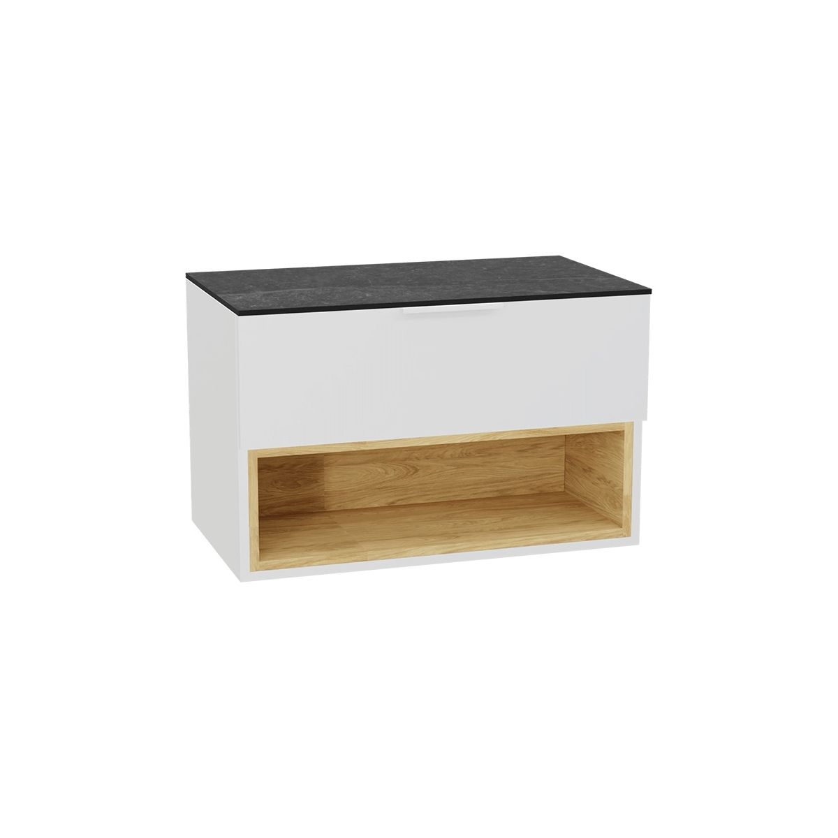 Dulap lavoar modern Tuto 2.0 cu un sertar încăpător și un compartiment de depozitare practic deschis. Fronturile sunt livrate complete cu mânere. Toate fronturile sunt într-o culoare asortată cu corpul dulapului. Dulapul combină perfect funcționalitatea cu designul modern. Varietatea de configurații permite piesei de mobilier să se potrivească stilului individual și nevoilor oricărei băi. Fronturile sertarelor sunt furnizate cu mânere incluse. Dulapul și sertarul sunt livrate complet asamblate. Fronturile și partea de sus / chiuveta sunt asamblate independent.
