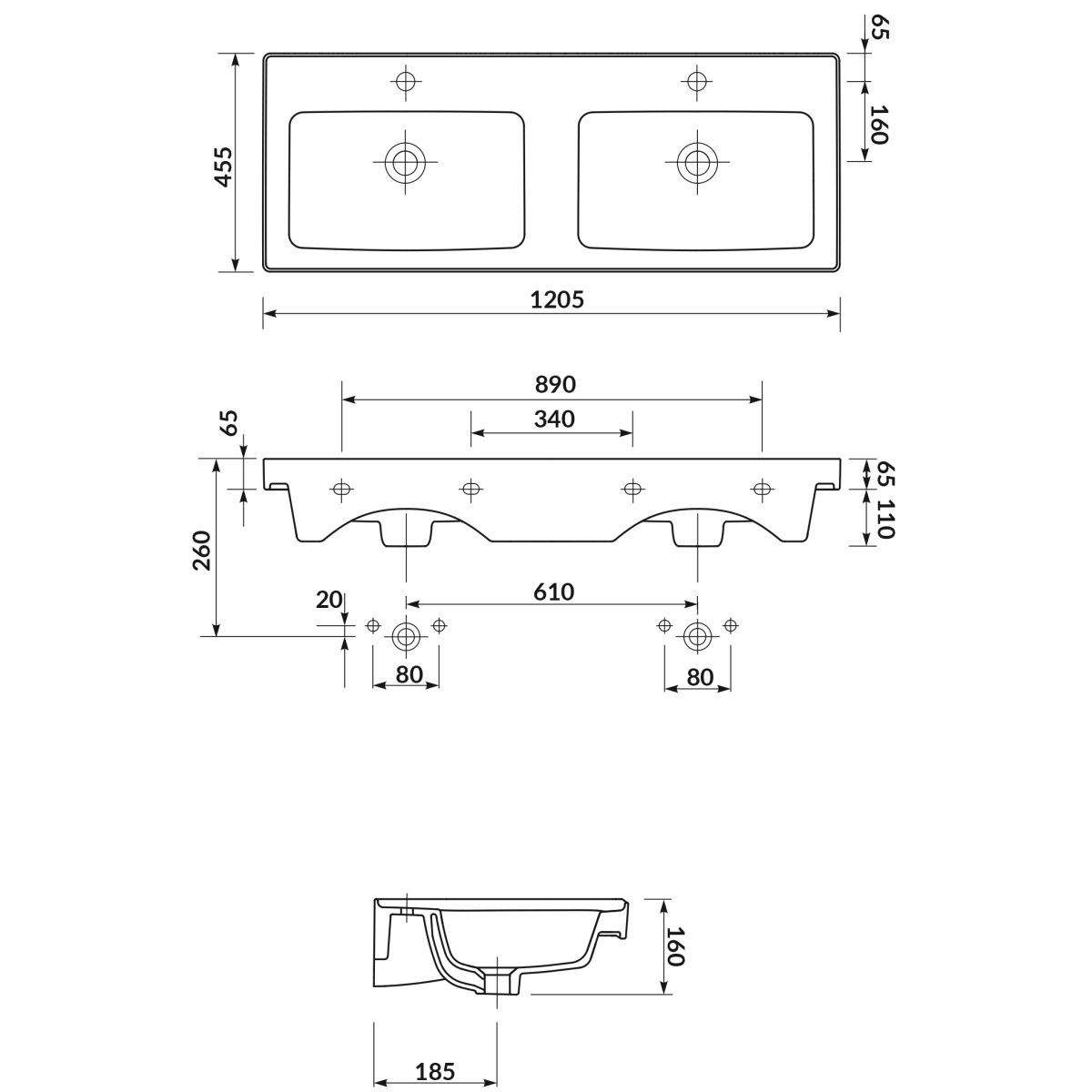 1) Lavoar 120,5 cm: