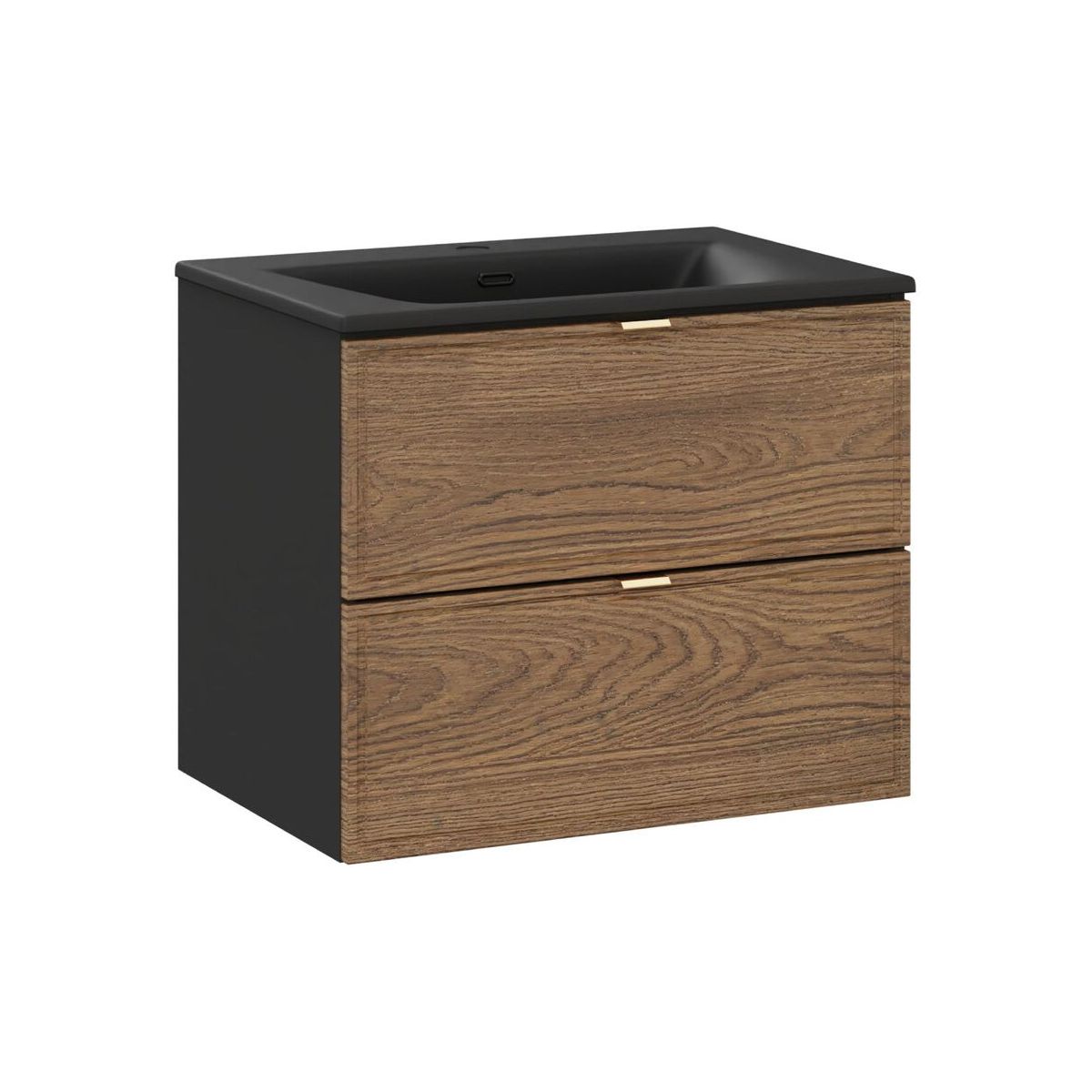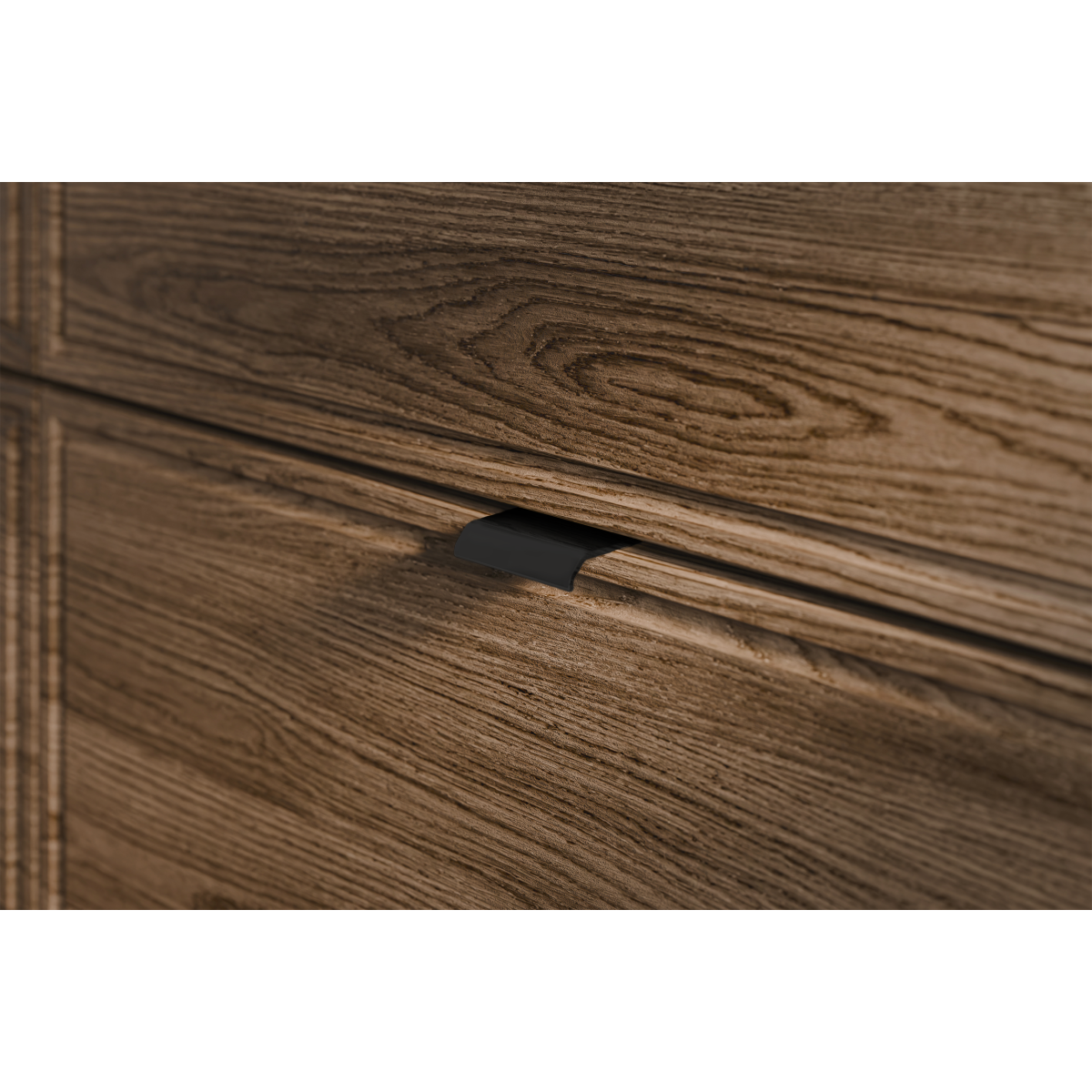 Dulapul lavoar de 60 cm cu două sertare din colecția Talia Casella combină eleganța clasică cu stilul modern. Fronturile caracteristice cu un cadru frezat subtil atrag atenția cu forma lor atemporală, în timp ce decorul Casella Oak reproduce perfect frumusețea naturală a lemnului, aducând căldură și armonie interiorului. Corpurile de mobilier în negru mat profund conferă colecției un aspect distinctiv și contemporan. Colecția oferă, de asemenea, posibilitatea de a personaliza dulapurile de lavoar datorită celor trei culori ale mânerelor incluse - aur lucios, crom lucios și negru mat, permițând ca mobilierul să fie adaptat preferințelor individuale.