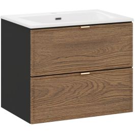 Dulapul lavoar de 60 cm cu două sertare din colecția Talia Casella combină eleganța clasică cu stilul modern. Fronturile caracteristice cu un cadru frezat subtil atrag atenția cu forma lor atemporală, în timp ce decorul Casella Oak reproduce perfect frumusețea naturală a lemnului, aducând căldură și armonie interiorului. Corpurile de mobilier în negru mat profund conferă colecției un aspect distinctiv și contemporan. Colecția oferă, de asemenea, posibilitatea de a personaliza dulapurile de lavoar datorită celor trei culori ale mânerelor incluse - aur lucios, crom lucios și negru mat, permițând ca mobilierul să fie adaptat preferințelor individuale.