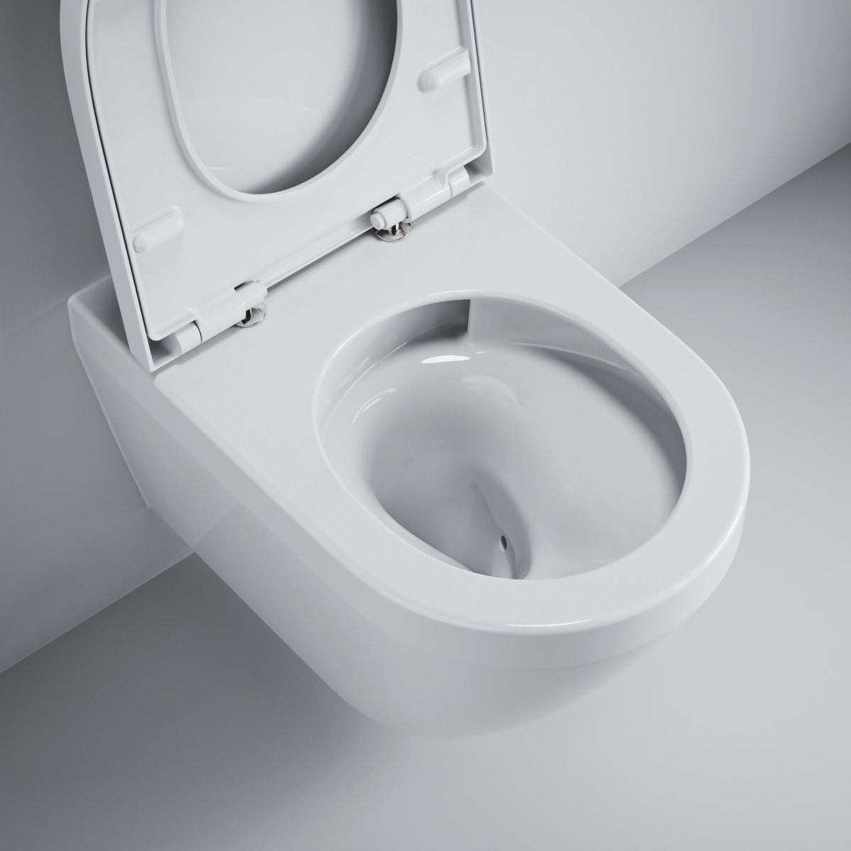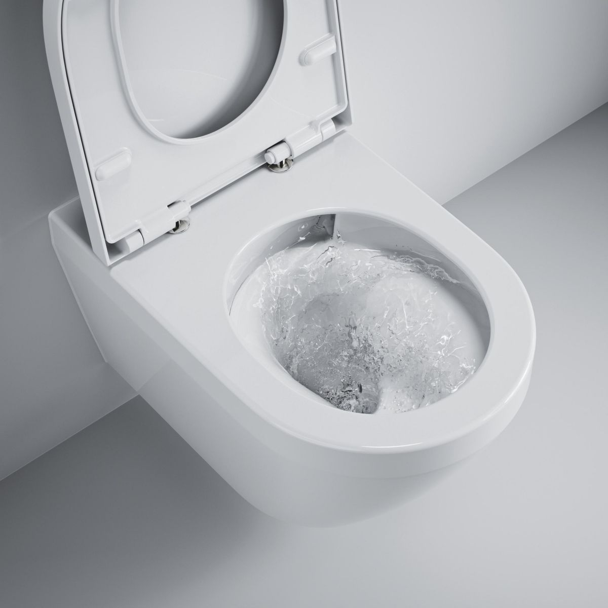 Vaso de toaletă Grohe Euro Ceramic cu capac cu închidere lentă, montat pe perete, fără colier, cu sistem de spălare vortex, alb lucios 102510SH00