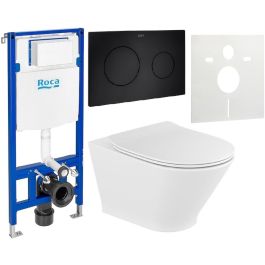 1. Roca Gap Vas de toaletă suspendat rotund fără margini, cu capac subțire, cu scaun liber, alb A34H0N8000
