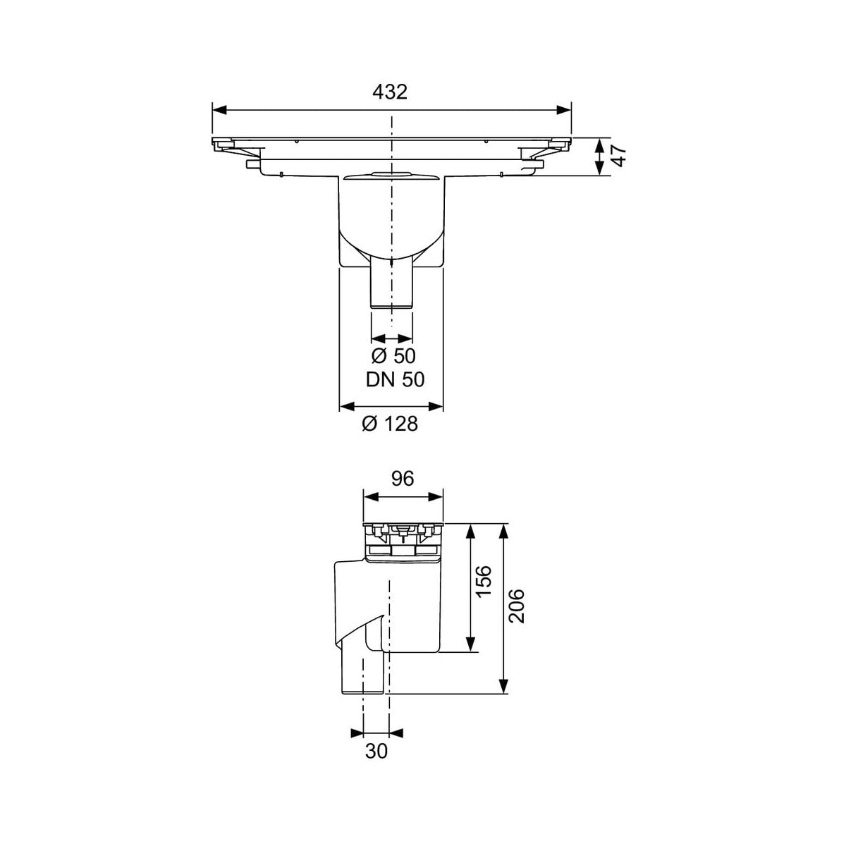 - înălțime minimă de montare 47 mm (de la marginea inferioară a sifonului până la marginea superioară a șapei)