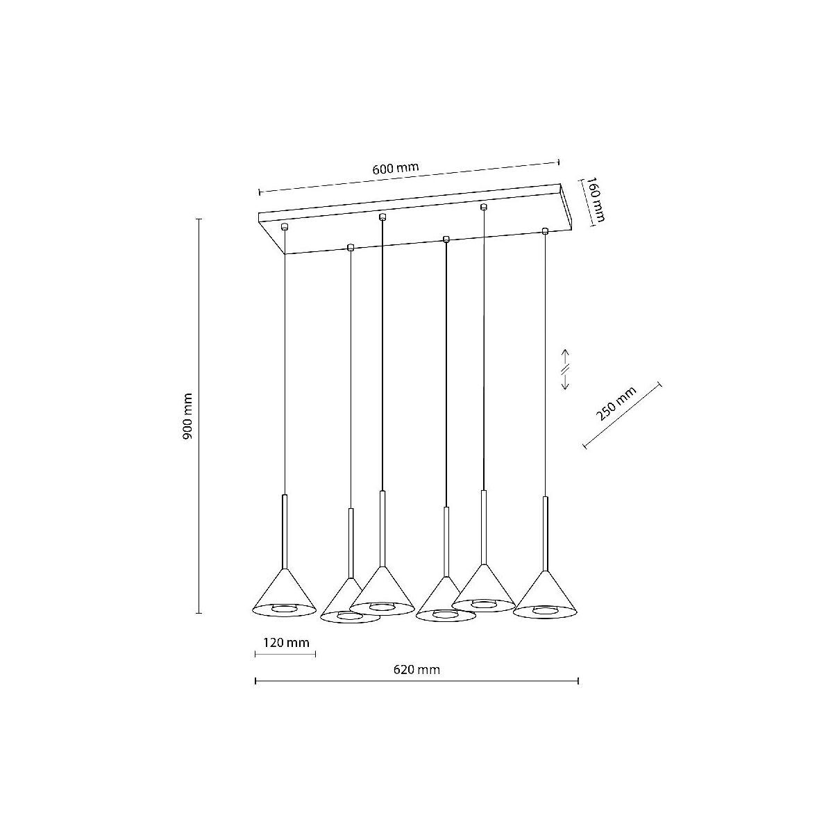TK Lighting Cono lampă suspendată 6x10 W negru 10306