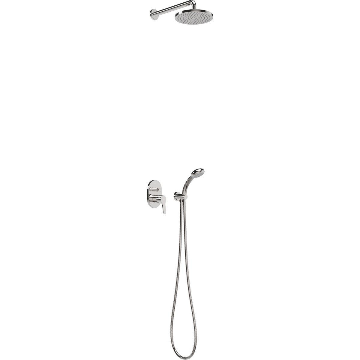 Inclus: baterie cu comutator, duș ploaie, duș de mână, furtun de duș, braț de duș, conexiune unghiulară