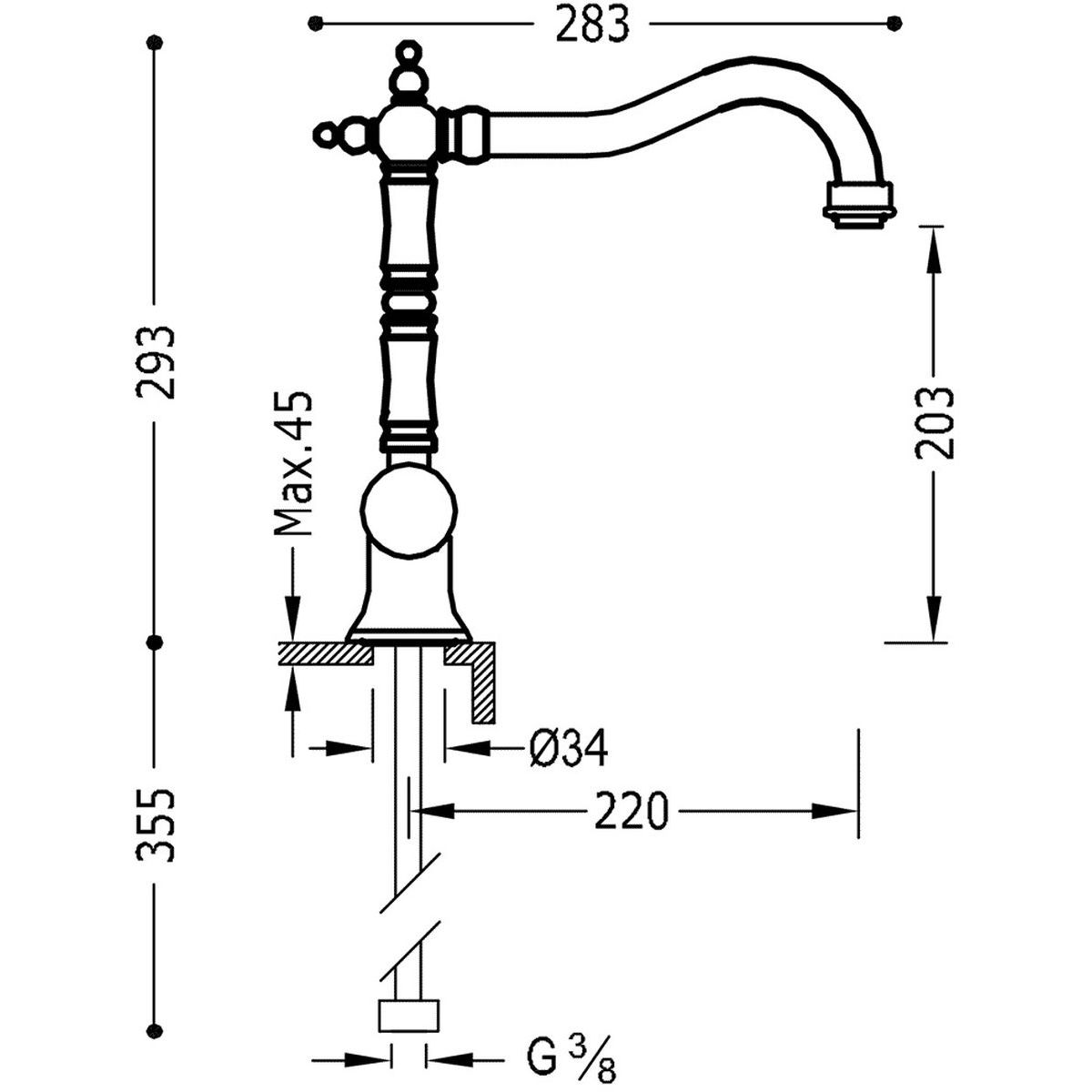 - înălțimea robinetului: 29,3 cm